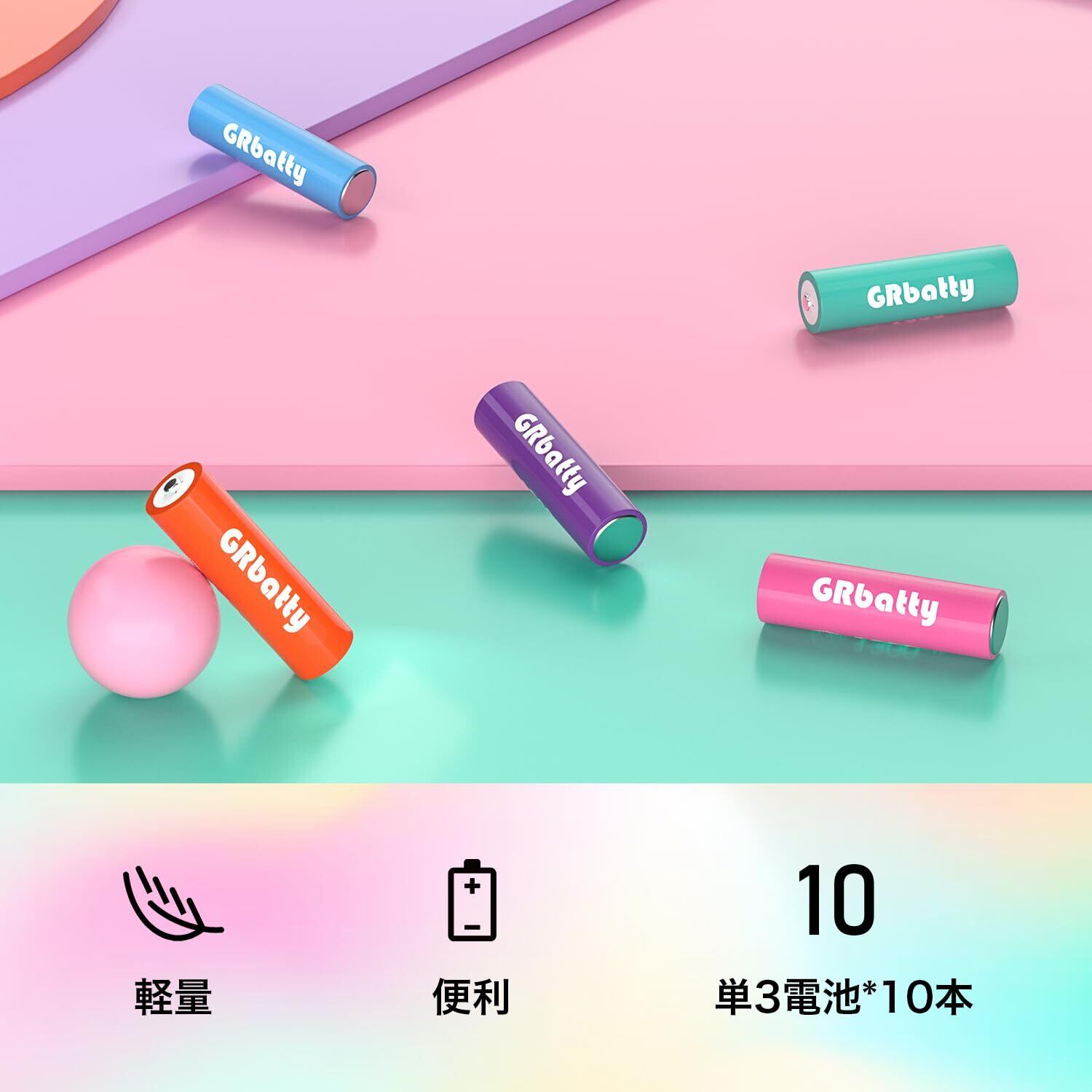 GRbatty 単3形 充電式ニッケル水素電池 10個セット 容量1300mAh 自然放電抑制 環境保護 電池収納約1200回循環使用可能