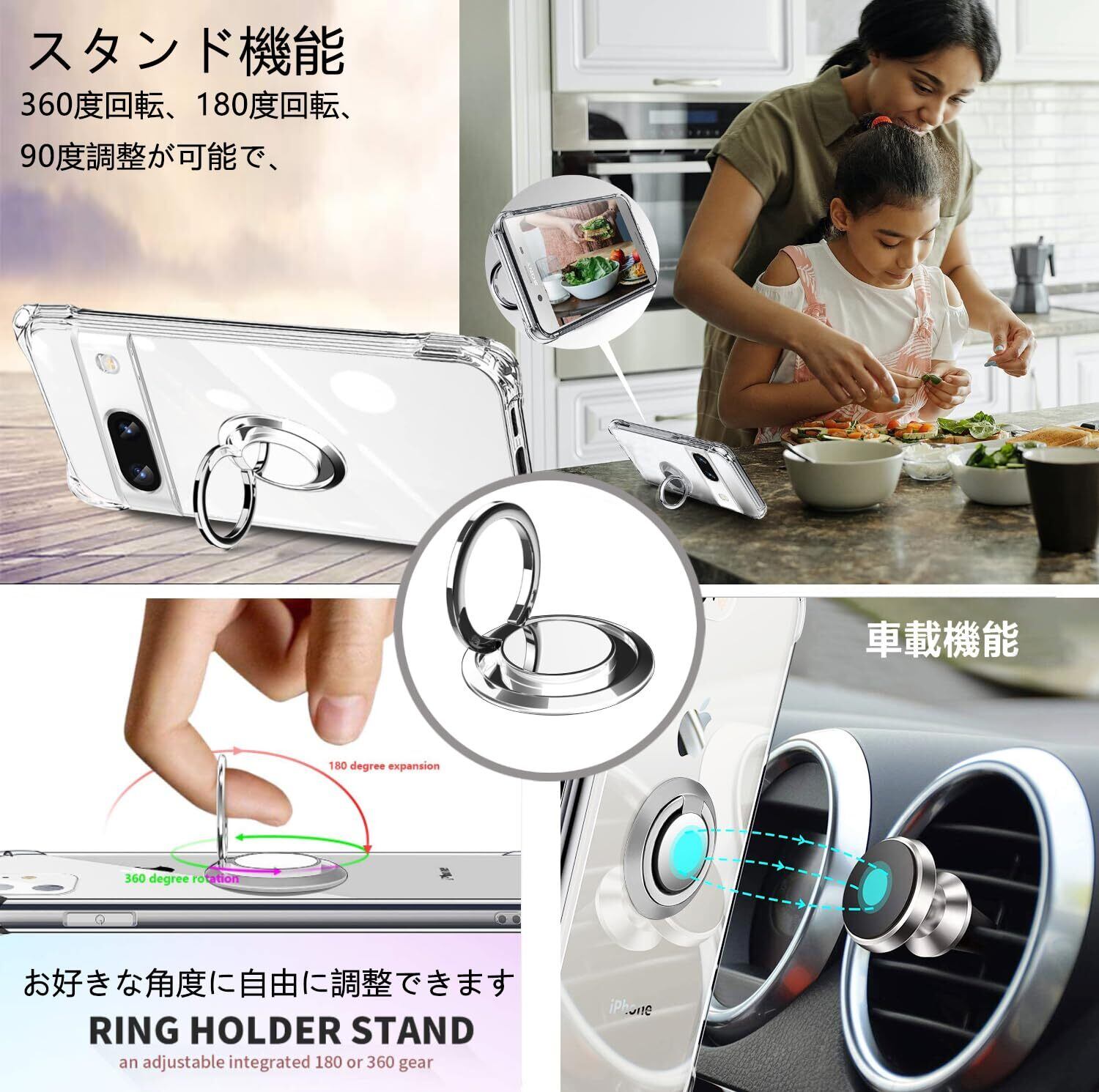 【リング付き機能】ケースを横置きにするとスタンド機能になり、持たず動画鑑賞などを楽しむことができます。リングは360度回転可能、183角度調節可能。一指着る式で、指がリングに通り抜け、片手で携帯を操作でき、落下防止します。ケースは柔らかいTPU素材を使用し、本体との擦れを防げ、ケースの着脱も簡単にできます。落下時には衝撃力を分散し、大事なデバイスを全面保護します。柔らかいナイロンストラップで首を快適に保ち、ストレッチの長さを調整でき、ストラップを取り外して、電話ケースを単独で使用できます。