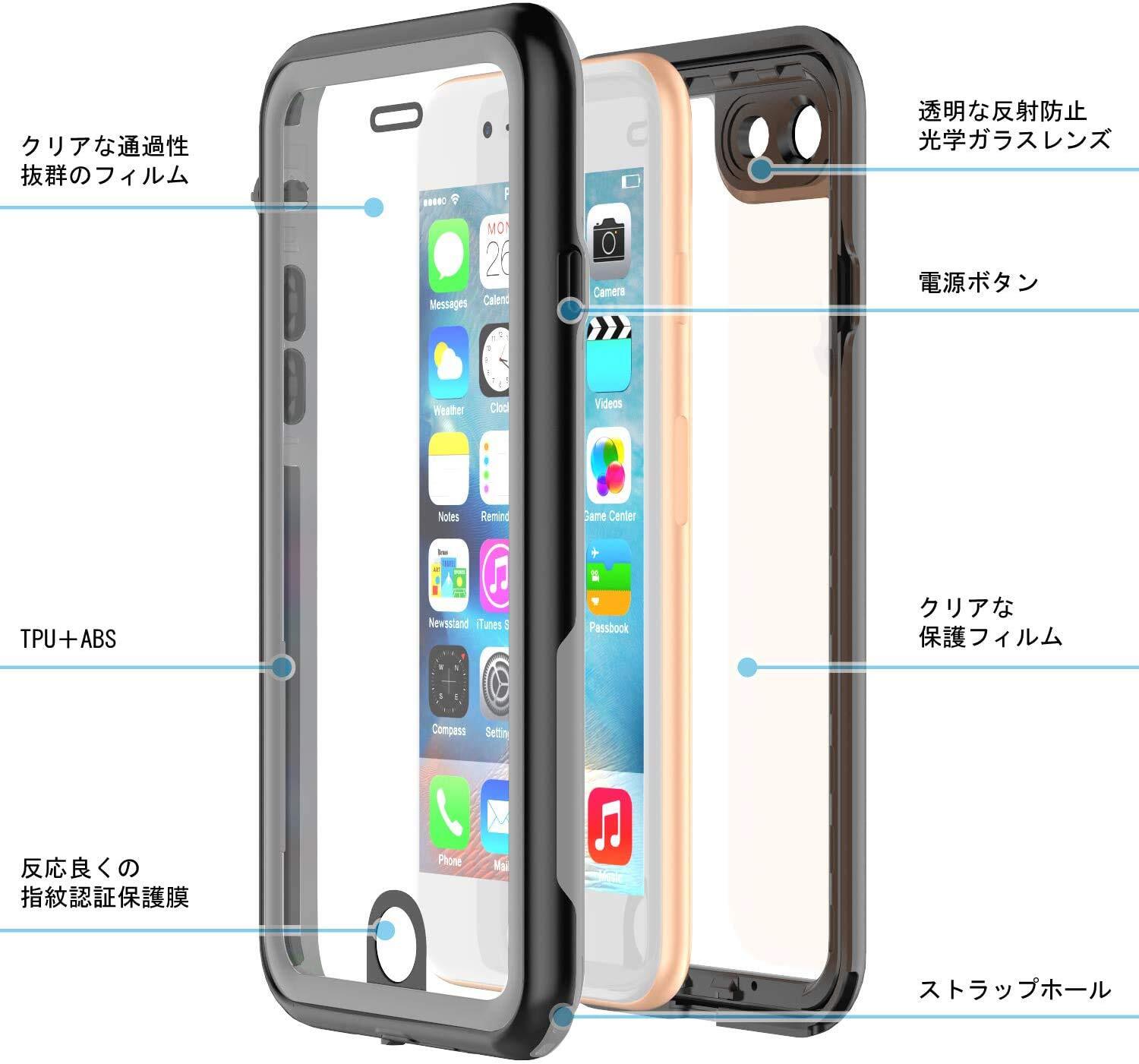 ●【IP68防水規格】 iPhone SE3(第三世代)/ SE2(第二世代)/iPhone7/iPhone8 に対応する。水深2mの水圧負荷で30分間の水没にも耐える密封構造である。防水機能だけでなく、砂・ホコリ・ゴミなどの侵入も防ぎますので、いつでもどこでもスマホをご安心してお使いいただけます。海辺、プール、スキー、登山などのアウトドア活動はもちろん、お風呂や雨の日などの様々な場面でも活躍可能。