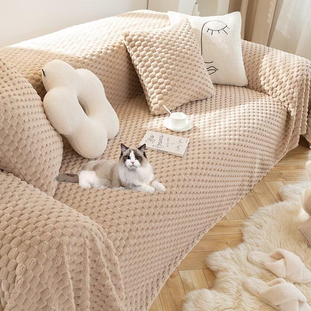 【在庫セール】YKFN ソファーカバー マルチカバー 北欧風 おしゃれ 秋冬用 暖かい ソファカバー 長方形 犬猫対策 かけるだけ ブランケット 1 2人掛け ふわふわ もこもこ カウチ ベッドカバー カーペット テーブルクロス リバーシブル 汚れ防止 大判 洗える 厚手 防寒 保温 冷房対策 ベージュ 130*180CM | allstore2
