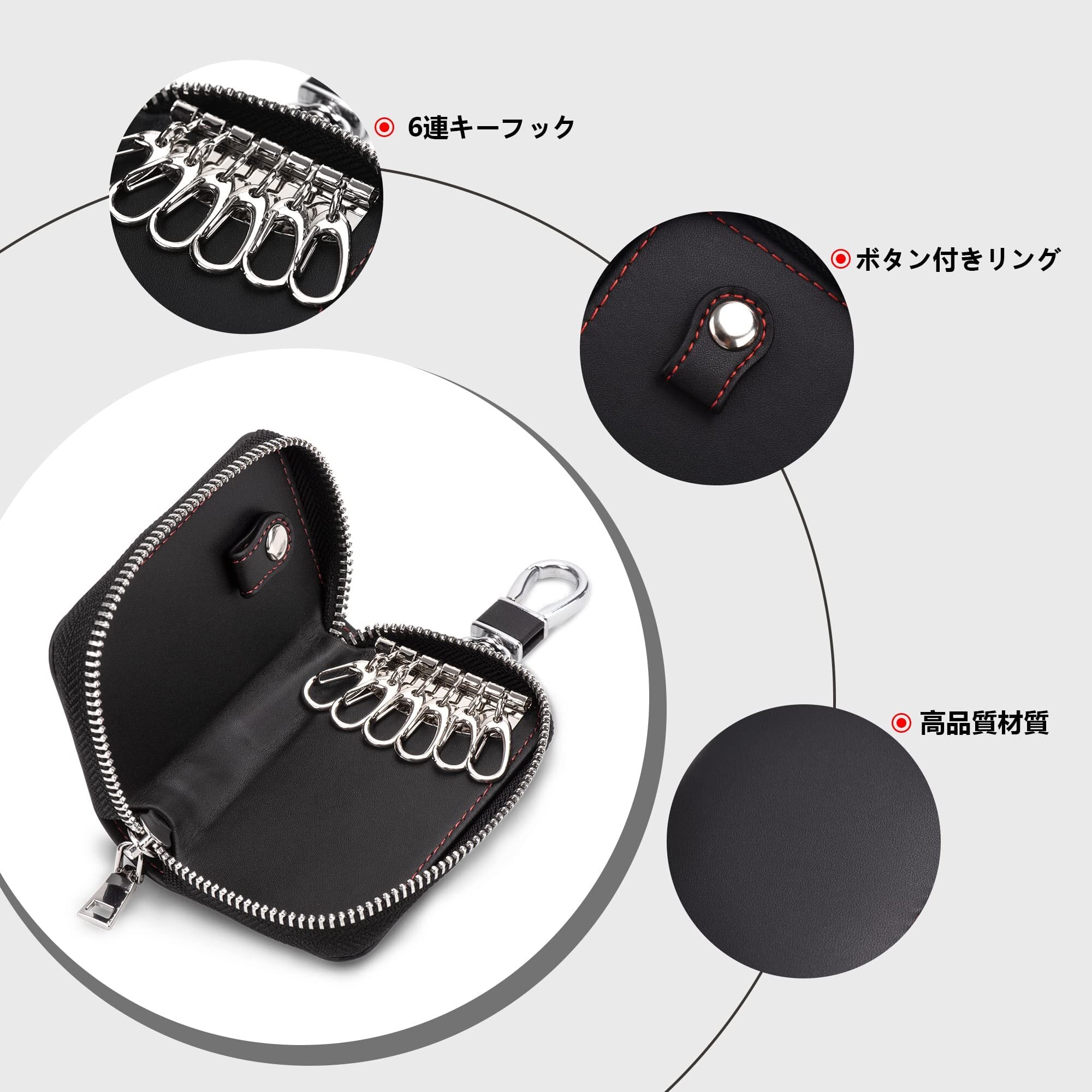 【数量限定】[Migeec] キーケース スマートキーケース 車キーケース メンズ レディース キーホルダー カードキーケース カラナビ付き コンパクト スリム プレゼントに 六連 4連可 多機能 男女兼用 (六連, ブラック) | allstore2