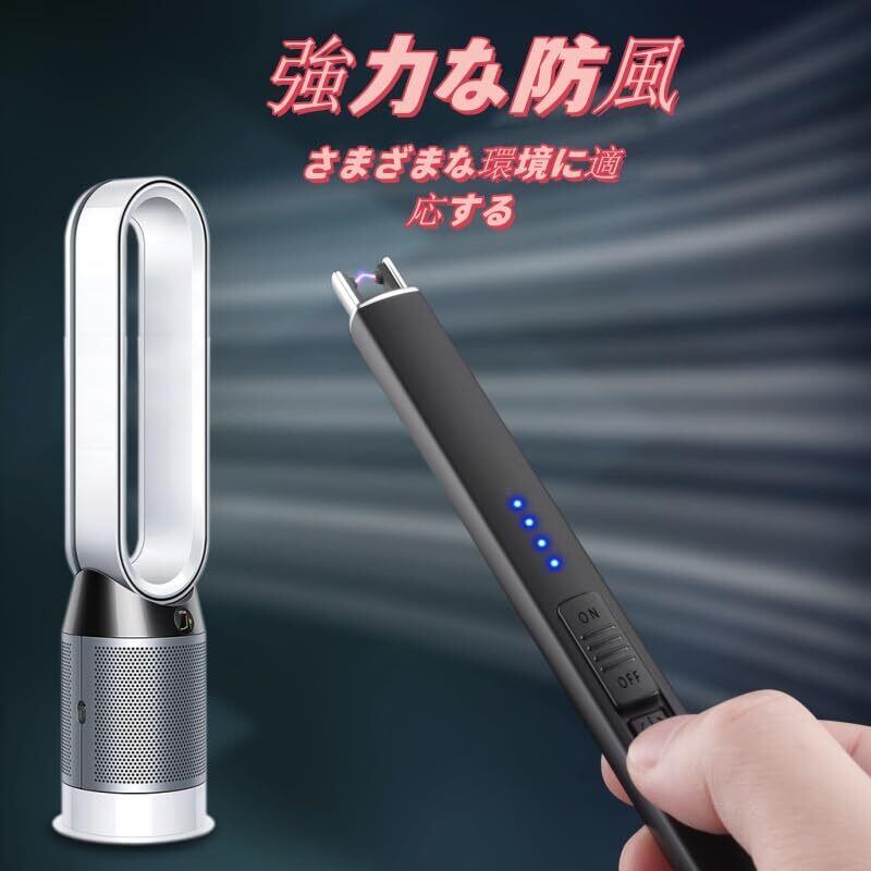 【在庫セール】プラズマライター 電子ライター 点火ライター 電気 USBライター 電量表示 充電式 火起こし 無炎 防風 スリム ろうそく BBQ お墓参り アウトドア用ライター (黑)