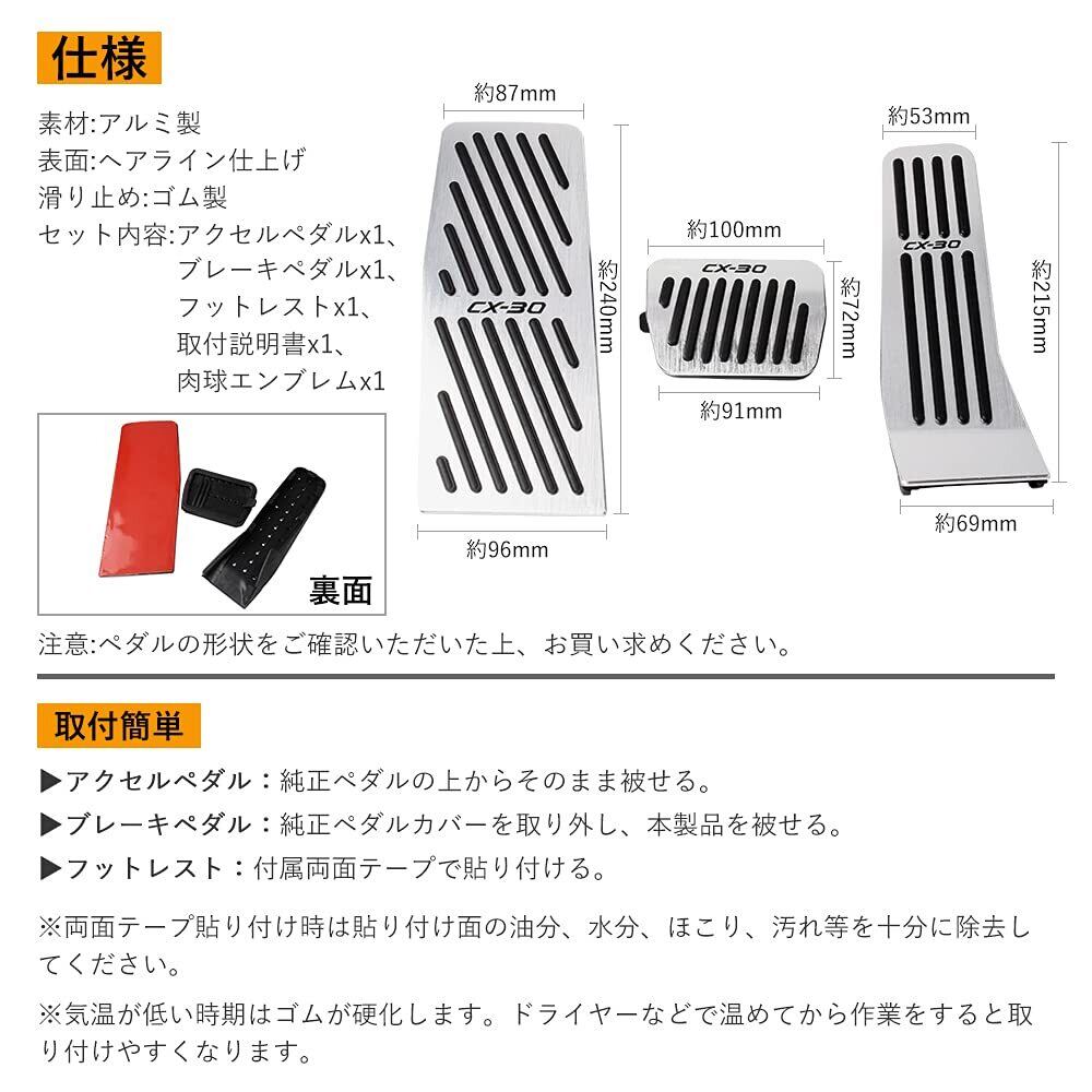 FUTWOD マツダ CX30 アルミペダル ペダルカバー MAZDA CX-30 DM系 ペダル アクセサリー カスタマ パーツ スポーツ 滑り止め 内装 ブレーキペダル アクセルペダル 工具不要 アクセル ブレーキ フットレスト 3ピース