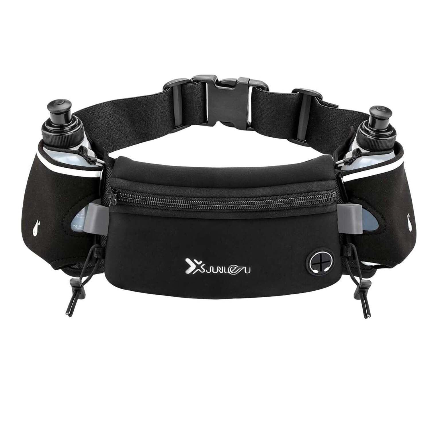 ランニングポーチ SpyFlyLie 水ボトル(2 x 190ML)付属品 ペットボトル スマホ 揺れない軽量 水筒 ウエストポーチ ウォーキング 調節可能なスポーツウエストポッチ 薄型 おしゃれ レディース メンズ ランエアー通気性良好(ブラック) [並行輸入品]