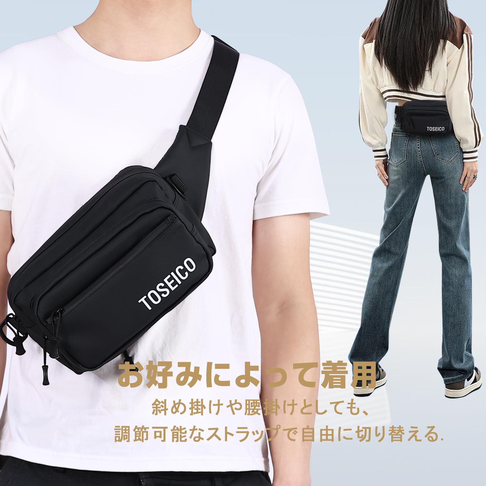 【5WAY拡張可能】TOSEICO防撥水 ウエストポーチ メンズ ウエストバッグ 一眼レフ対応 多機能 ランニング ボディバッグ レディース 斜めがけ 肩掛け 大容量 腰ポーチ アウトドア/旅行/日常にマルチ活用 バイク 撮影 犬の散歩 釣り ランニング 仕事 作業 防災用 ブラック防撥水3.0