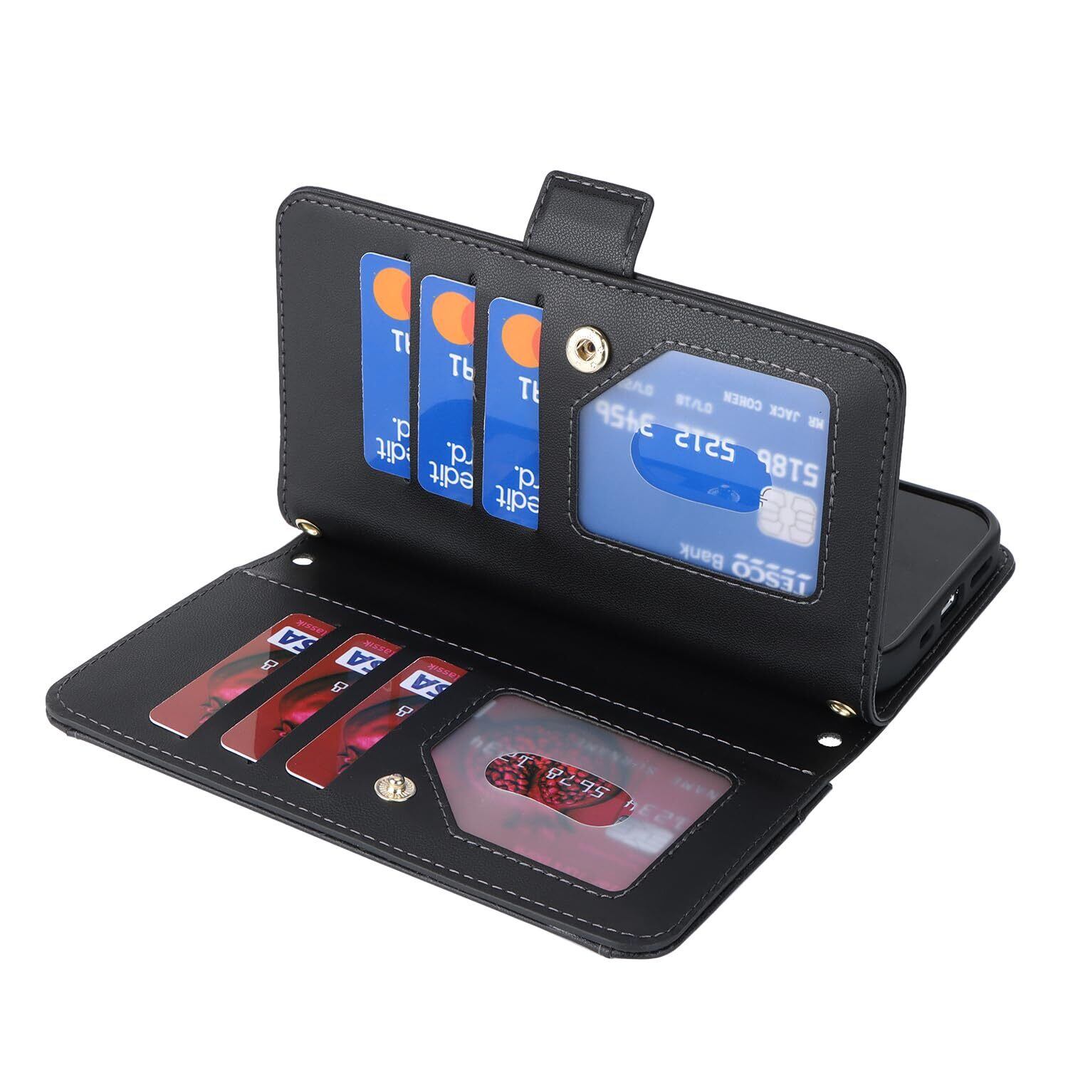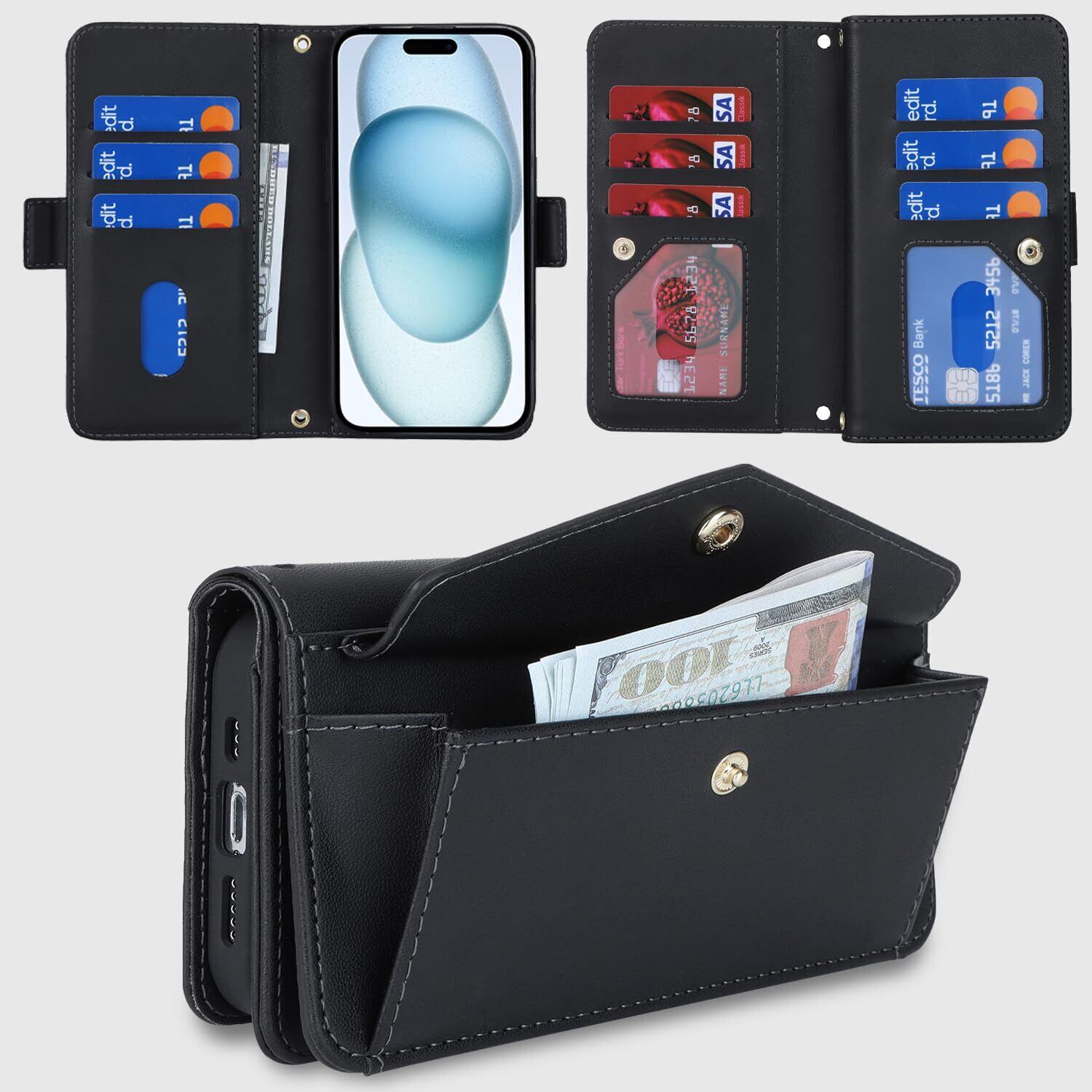【新春セール】Eastwave for iPhone 15 ケース ショルダー クロスボディアイフォン 15 留め具 肩がけ 首掛け 斜め掛け カードケース for iPhone15 手帳型 携帯 ケース case 財布型 カード収納 小銭入れ PUレザー 6色 ブラック | allstore2
