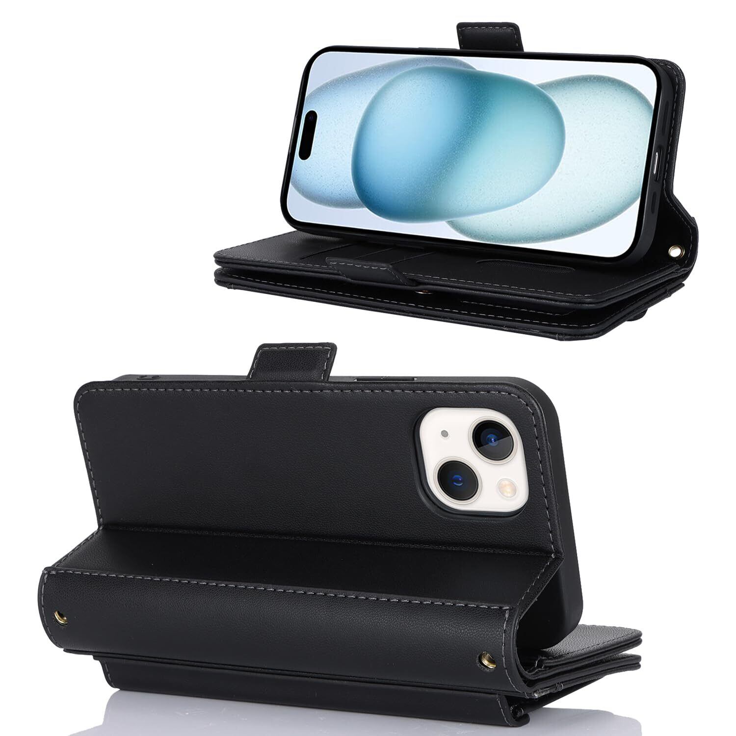 for iPhone 15 ケース ショルダー クロスボディアイフォン 15 留め具 肩がけ 首掛け 斜め掛け カードケース for iPhone15 手帳型 携帯 ケース case 財布型 カード収納 小銭入れ PUレザー 6色 ブラック