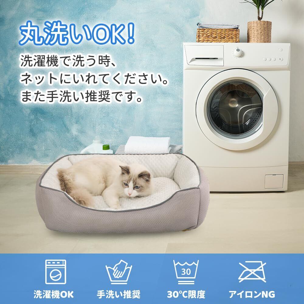 【2022最新】Peto-Raifu 猫 ベッド 犬 ベッド ひんやり ペットベッド ペットクッション 夏用 ペットソファー ふわふわ 3D豆 接触冷感 ペットマット 超小型犬用 猫用 洗える 無地 外径約60x50x18cm グレー | allstore2