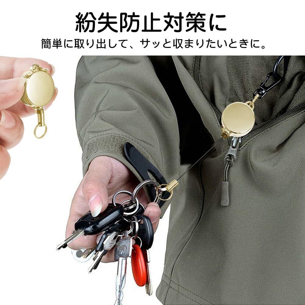 【新着商品】[サムコス] 4個セット リールキーホルダー 亜鉛合金 リールキー 伸縮自在 パスケース リール 金具 リールストラップ 吊り下げ名札用