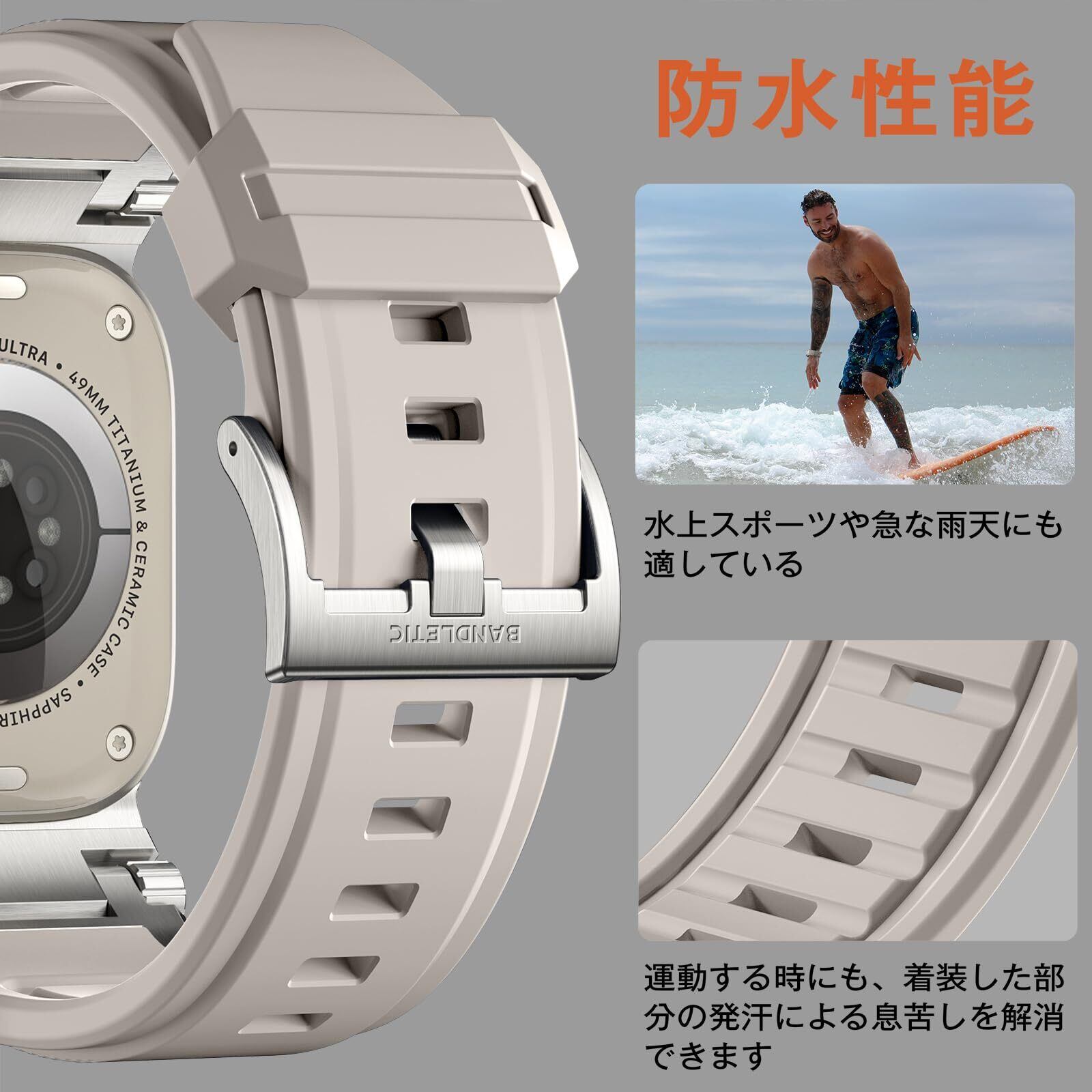 [Bandletic] 2024最新型 アップルウォッチ バンド 44mm/45MM/46mm/49mm選択可能 - スポーツ バンド フルオロゴム Compatible with ultra2/ultra 49mm Series 10/9/8/7/SE2/SE/6/5/4/3/2/1 防水 運動 透气 調節簡単 バンド メンズ