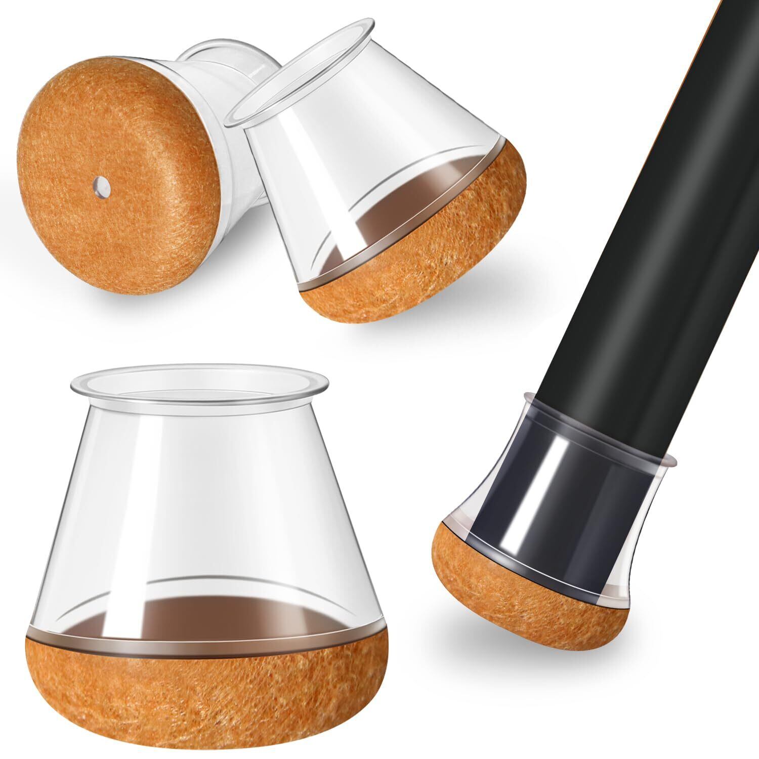 【2022最新】椅子脚カバー四角 椅子の足カバー正方形 フェルト巻 椅子足あしキャップ シリコン椅子足キャップ 四角脚兼用 防音滑り止め フローリングやタイル張りの床を保護するシリコン製チェアフットカバー16個 (透明, 丸型 S 適用範囲:14-20mm)