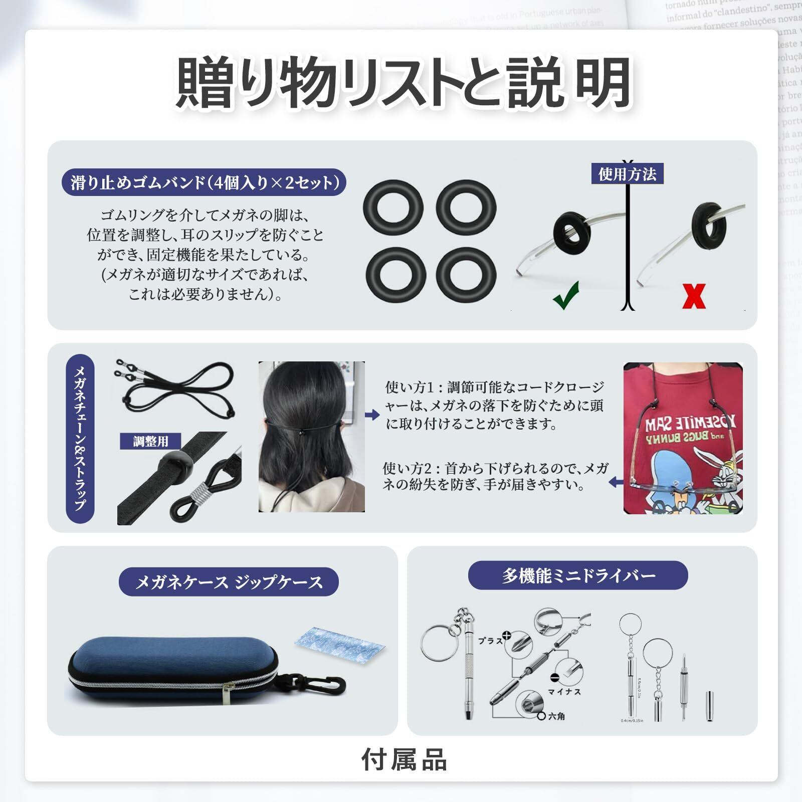 非球面クリアレンズ - レンズは樹脂製で、クリアな視界が得られます。 読書や携帯電話を見るとき、裁縫や爪切り、小物の補修などに最適なので、小さな文字や物が読めないという悩みから解放されます。母の日、女性の日、ご家族やご友人へのプレゼントに最適です。
