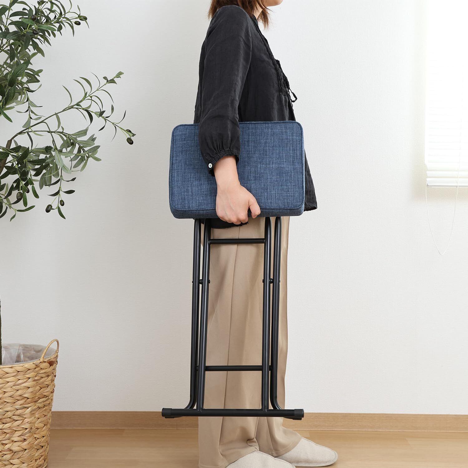 不二貿易 折りたたみチェア 室内 椅子 座面高60cm ハイチェア 幅36×奥行28×高さ60cm デニム調 イーグル 51437