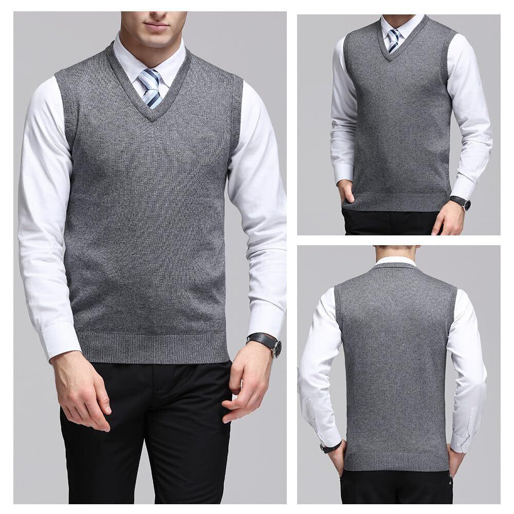 【特価セール】[PAFHL] ニットベスト メンズ Vネック ビジネス カジュアル 無地 ベスト 薄手 軽量 伸縮性 通勤 通学 春秋冬 大きいサイズ M~3XL