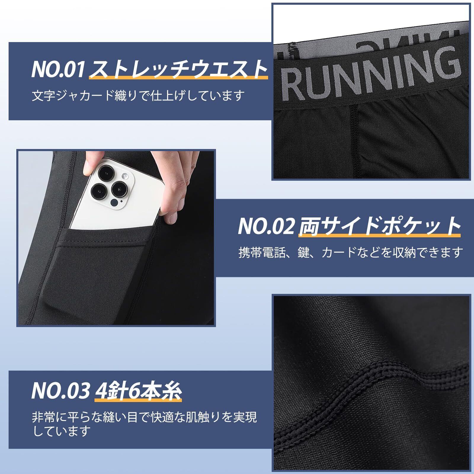 実用性:このスポーツタイツのウエスト部分は伸縮性ある素材を採用しており、着脱ラクラクで、どんな体型の方にフィットした快適着心地です。また、両サイドにはお2つポケットを付き、携帯電話ゃ鍵やカードなどの小物を入ることができます、実用性が格段にUP!