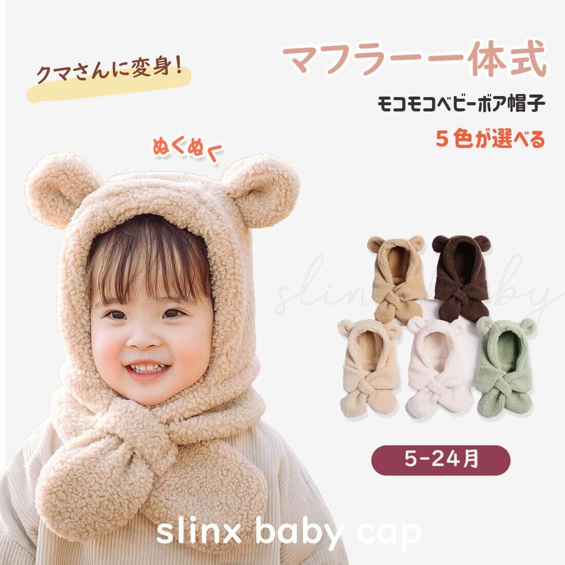 [SLINX] ベビー 新生児 帽子 動物 耳 くま くま耳 可愛い マフラー あったか 防寒 子供用 男の子 女の子 キッズ 赤ちゃん 春 秋 冬 0~2歳 子ども もこもこ フリーサイズ DM08