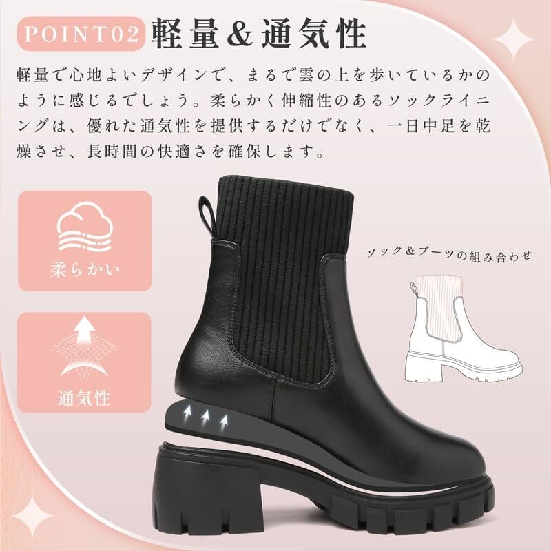 【数量限定】[todaysunny] ブーツ レディース サイドゴアブーツ 厚底ブーツ レディース ショートブーツ 黒 ミドル丈 ソックスブーツ ニットブーツ エンジニアブーツ ハイカット 秋 冬用 ワークブーツ アンクルブーツ 革靴 防水 Boots women | allstore2