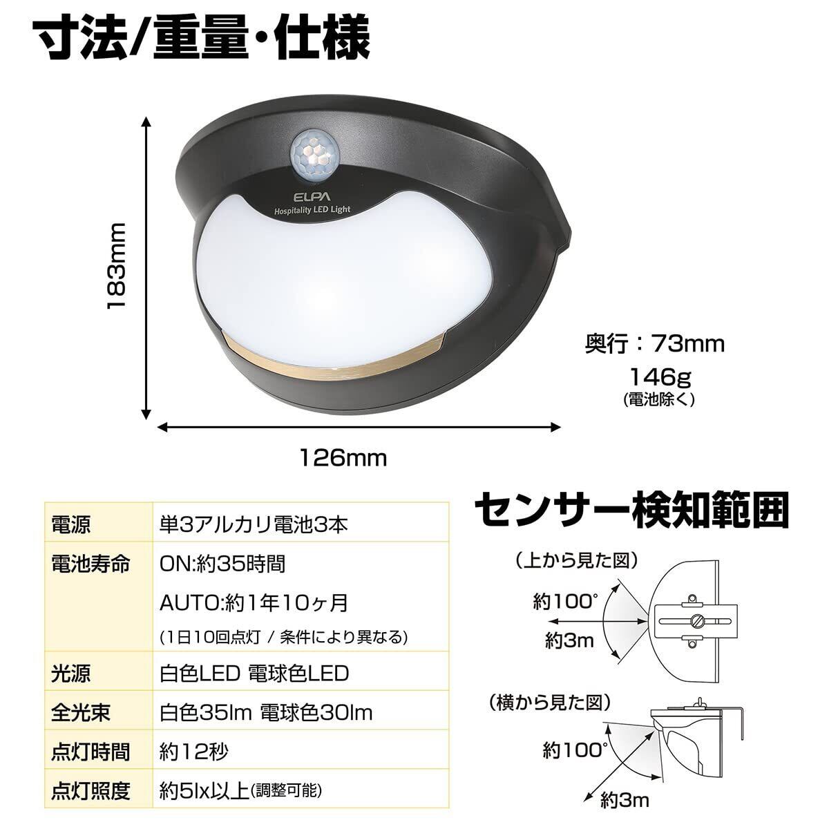 エルパ (ELPA) もてなしライト (扉ひっかけ形/電球色・白色/電池式) 人感センサー/ライト/室外 防沫型 (HLH-2206)
