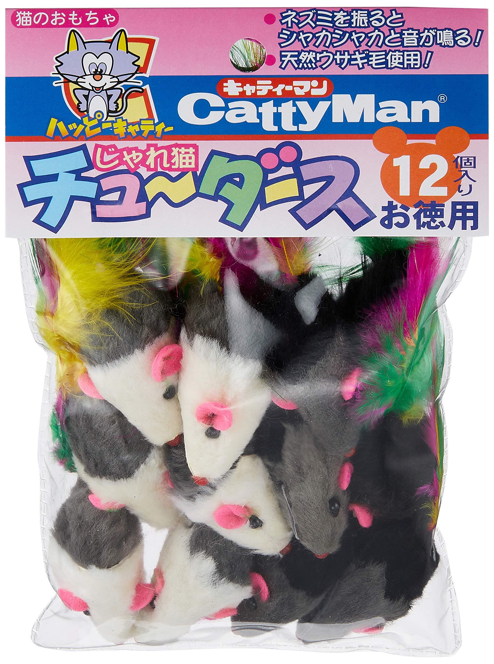 カラフルな羽つきネズミが大集合。お得なパック。振るとカシャカシャ音が鳴る羽ネズミが12個入ったチューダース。お得なパック。<対象:猫>