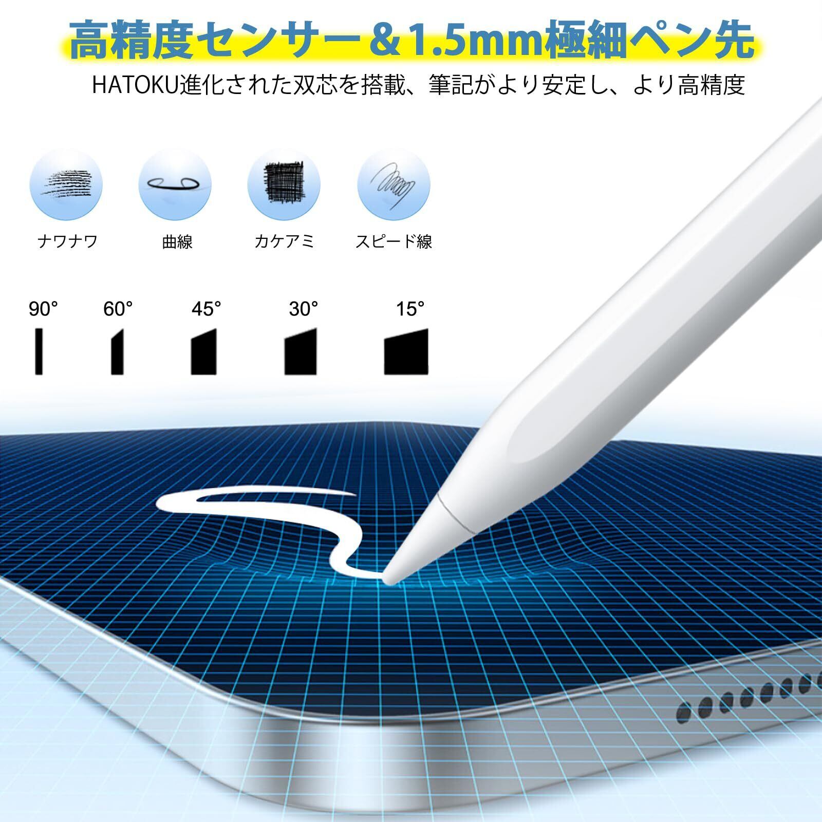 【HATOKU・10分高速充電】タッチペン ipad用 ペンシル アップルペンシル あいぱっと ペン 極細 スタイラスペン 自動接続/傾き感知/パームリジェクション機能 耐摩 2018年以降ipad対応 ホワイト