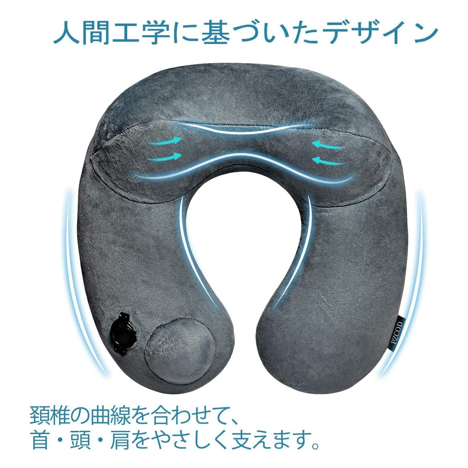 PZCOD ネックピロー 首枕 旅行用 飛行機 空気枕 携帯枕 U型 バス オフィス トラベル 旅行便利グッズ 収納袋 洗えるカバー