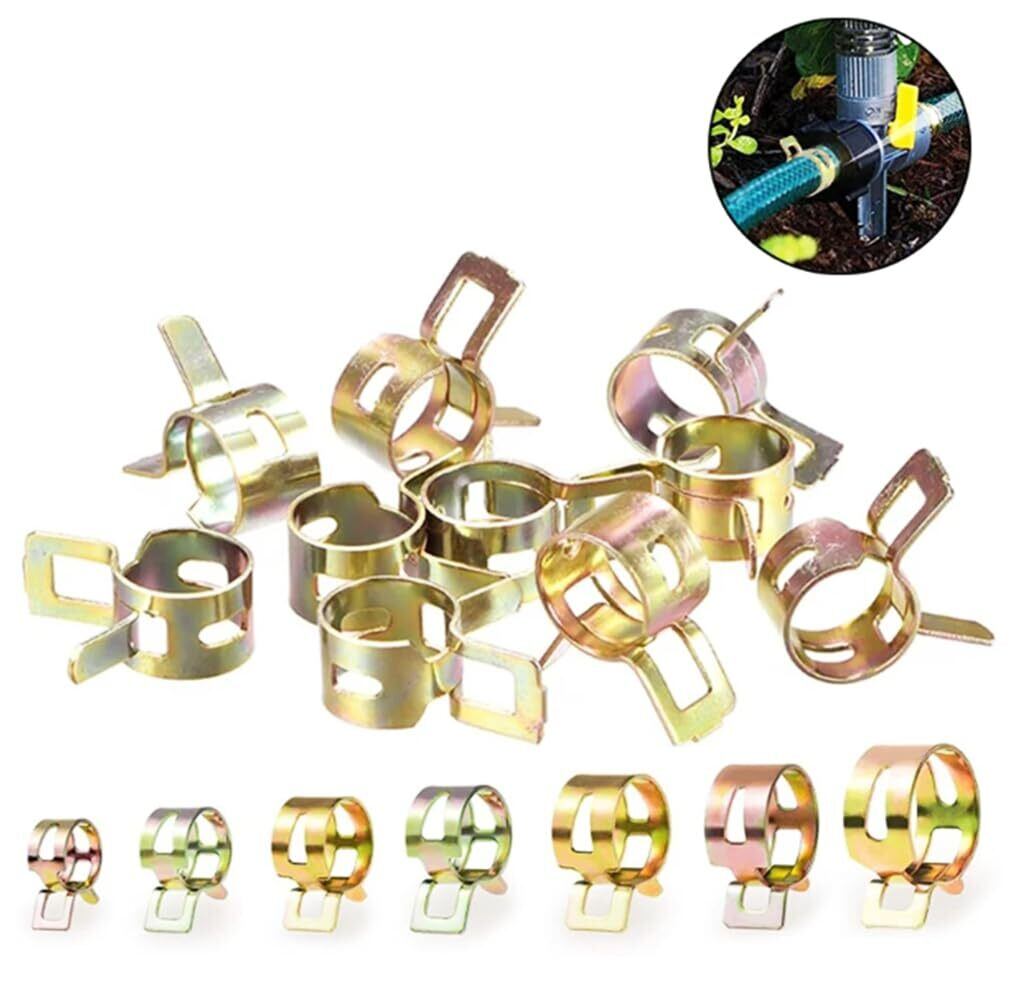 【在庫処分】YFFSFDC ホースクランプ ワンタッチホースクランプ スプリングクランプホースバンドクリップ 金属鋼製 亜鉛メッキ 錆ない 強力 便利 固定用 内径6-17mm 8サイズ 125個セット 収納ケース付き