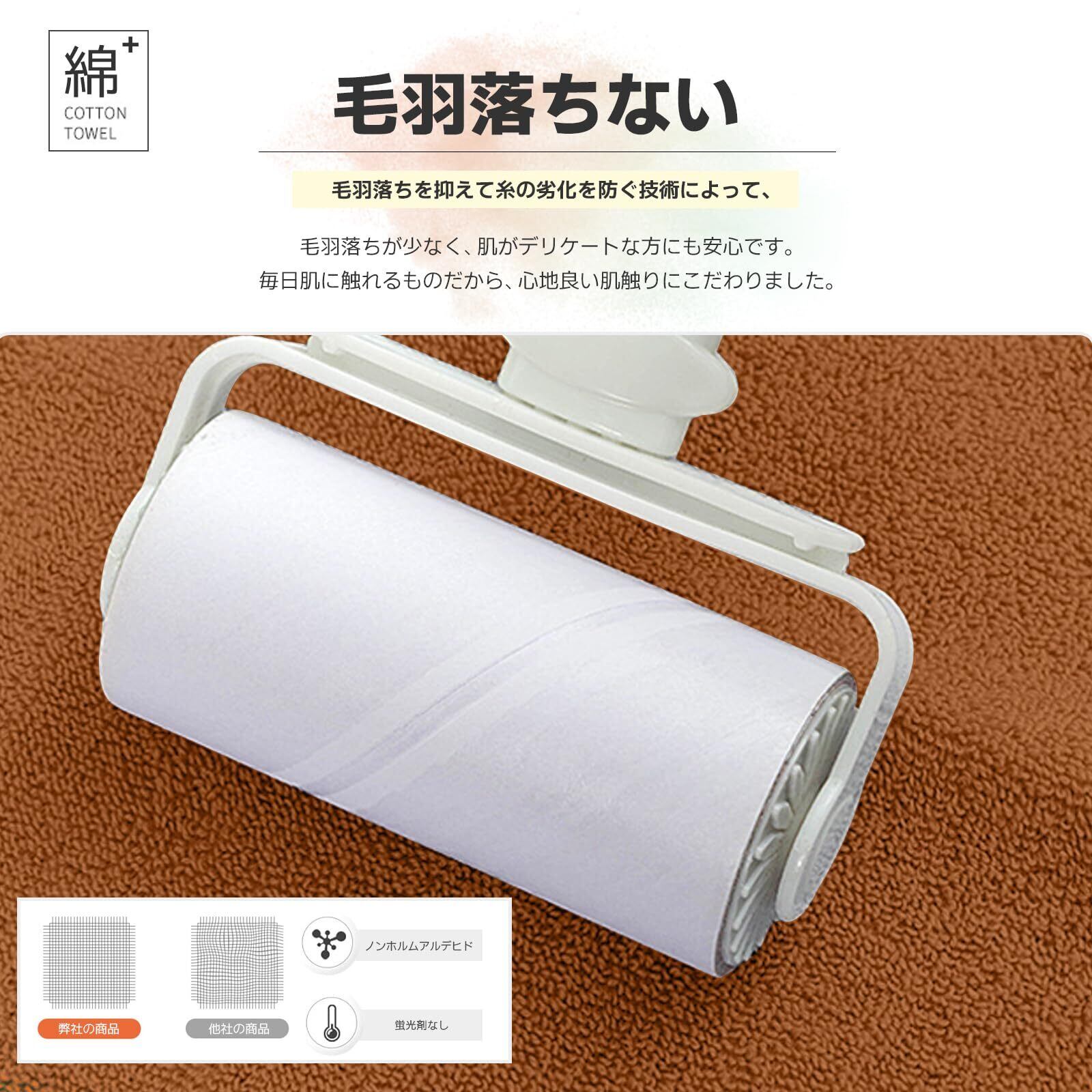 【毛羽が出ない、色あせない】 染色堅ろう度は高い、何度で洗っても色落ちしておりません。折れにくい強靭な長い糸に精製織法を採用して、毛羽が出なくて、繊維もタオルの表面から外れにくくなります。