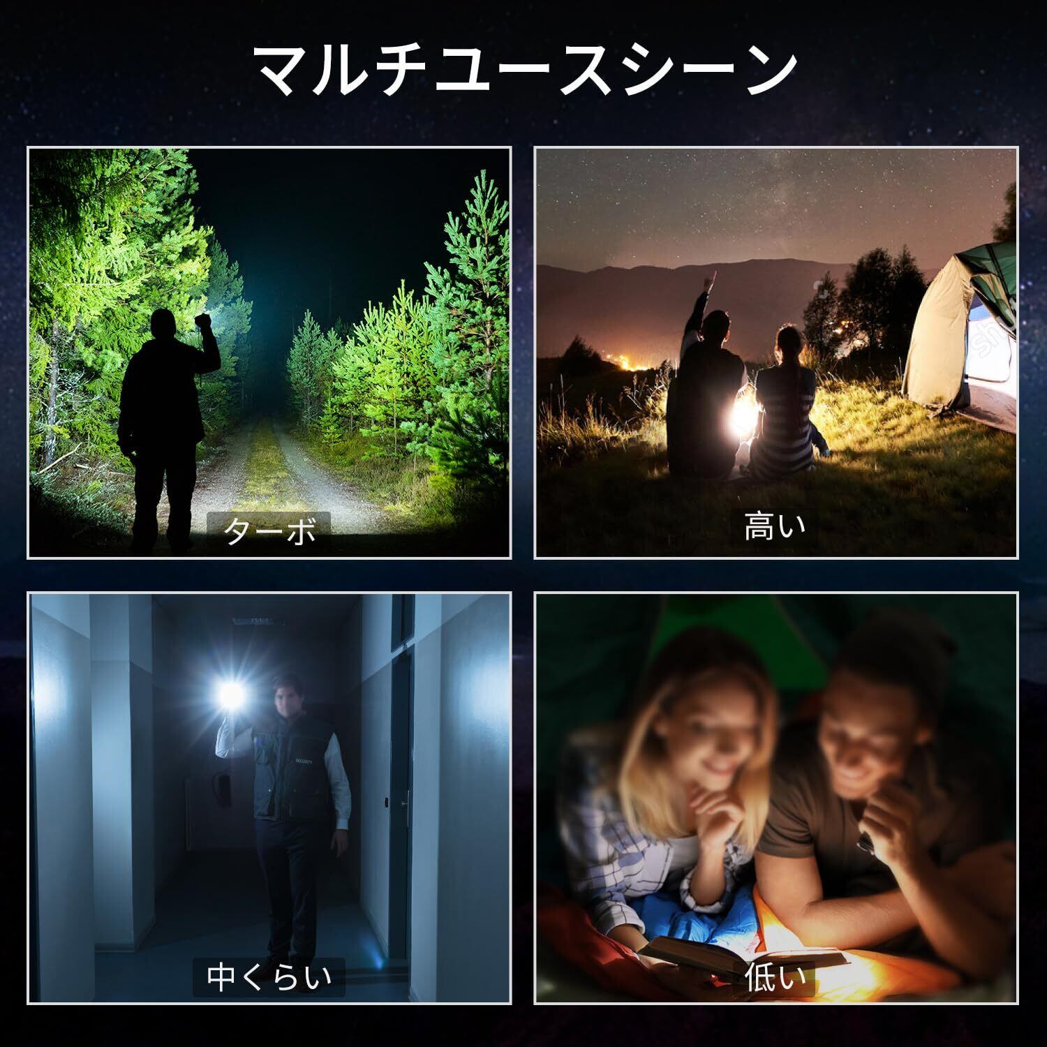 【超高輝度懐中電灯】: 懐中電灯には高品質のLEDが搭載されており、最大出力は1100ルーメンに達し、最長射程は115メートルです。