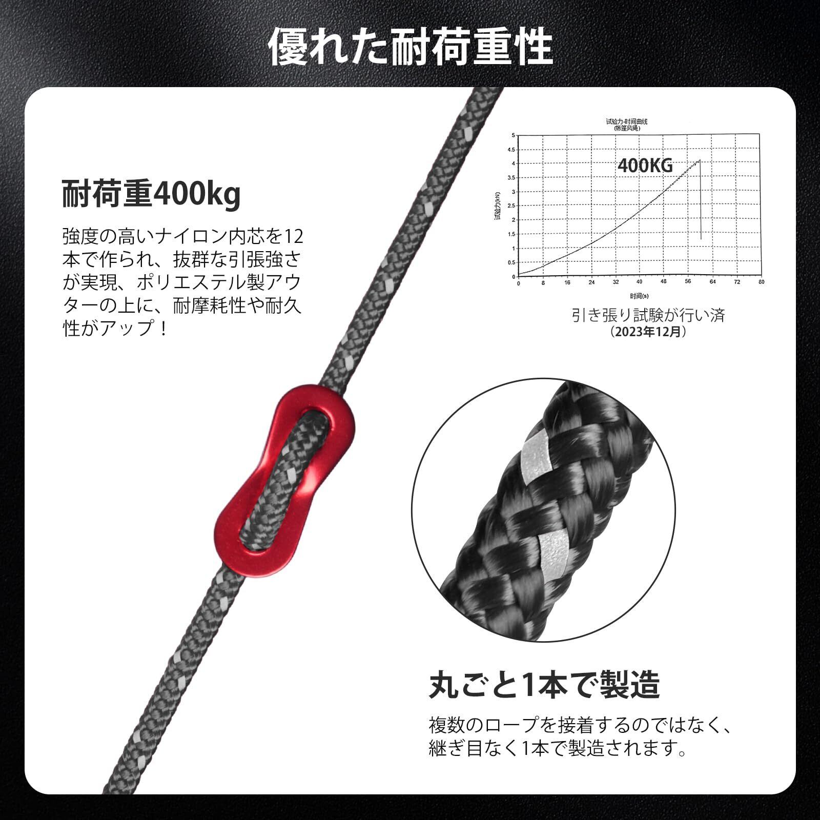 【人気商品】パラコード ガイロープ 4mm 反射 テントロープ - 耐荷重400kg 12芯 50m巻 自在金具付き ガイドロープ 細引き キャンプ タープ アウトドア アクセサリー用 紐 黒 DANOFY | allstore2