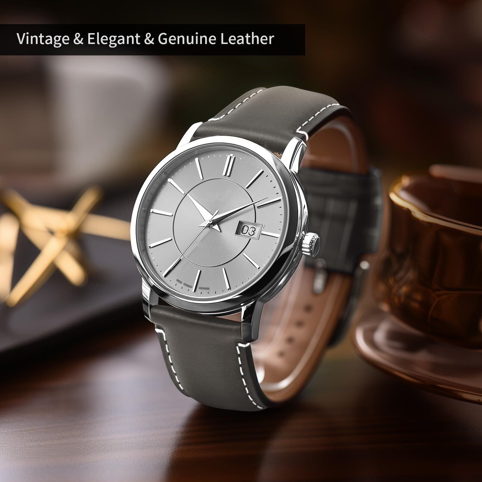 【上質な本革腕時計バンド】フルグレインレザーと理想的なコンフォート— 316ステンレス鋼のバックル。ポリッシュとブラッシングプロセスを組み合わせ、クラシックな外観を保ちます。処理された下側(ソフトカーフレザー)は肌に対して非常に柔らかく、滑りを最小限に抑えながら理想的な快適さを提供します。