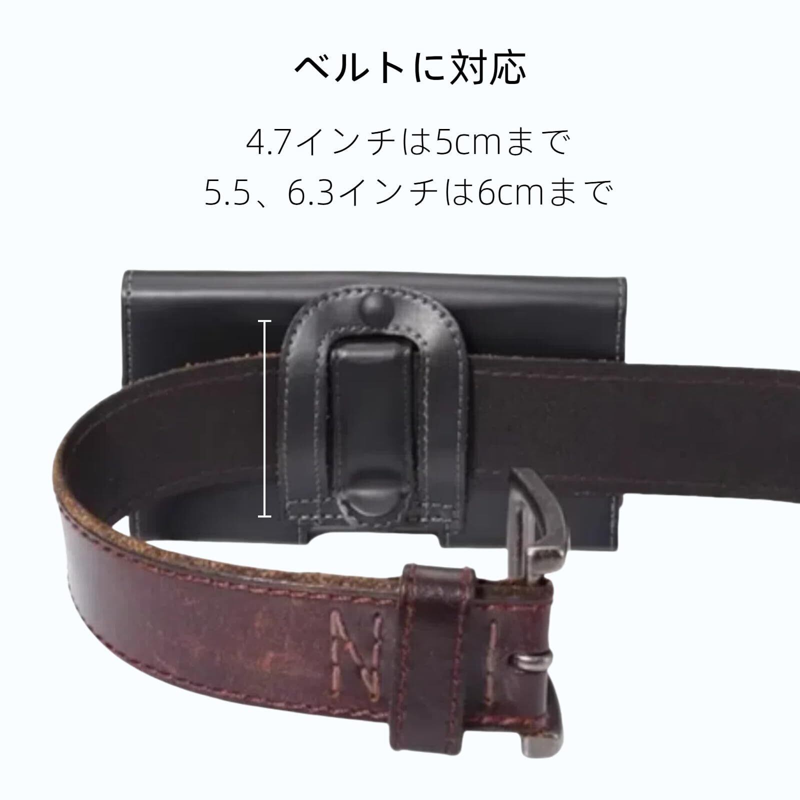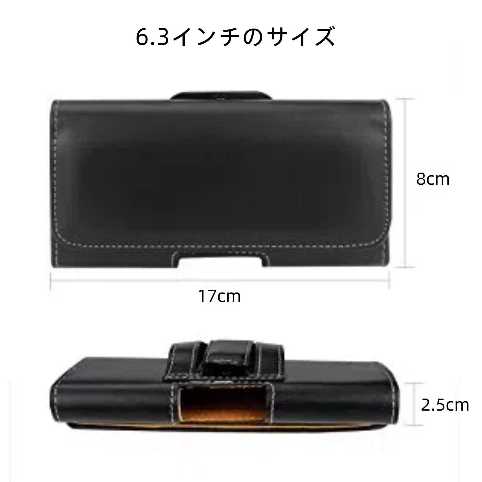 Toprime ベルトケース 6.3インチ横型 スマホポーチ レザー 携帯ポーチ スマホケース スマホホルダー U字型クリップ 作業用 iPhone16promax,16plusなど携帯の本体長さ16~17cmまでのスマホ対応