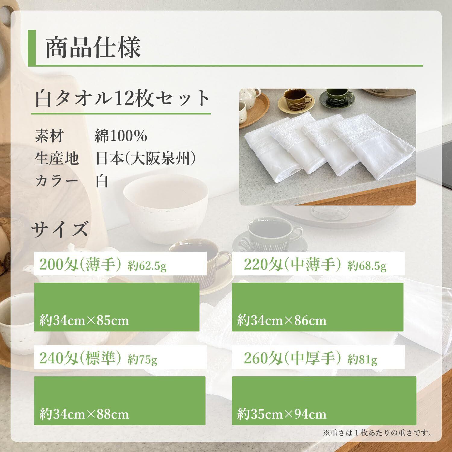 【数量限定】泉州タオル(Sensyu Towel) 使いやすい普通の白タオル(平地つき) 12枚セット 薄手 日本製 フェイスタオル 200匁 綿100% 業務用 飲食店 美容院 銭湯 まとめ買い