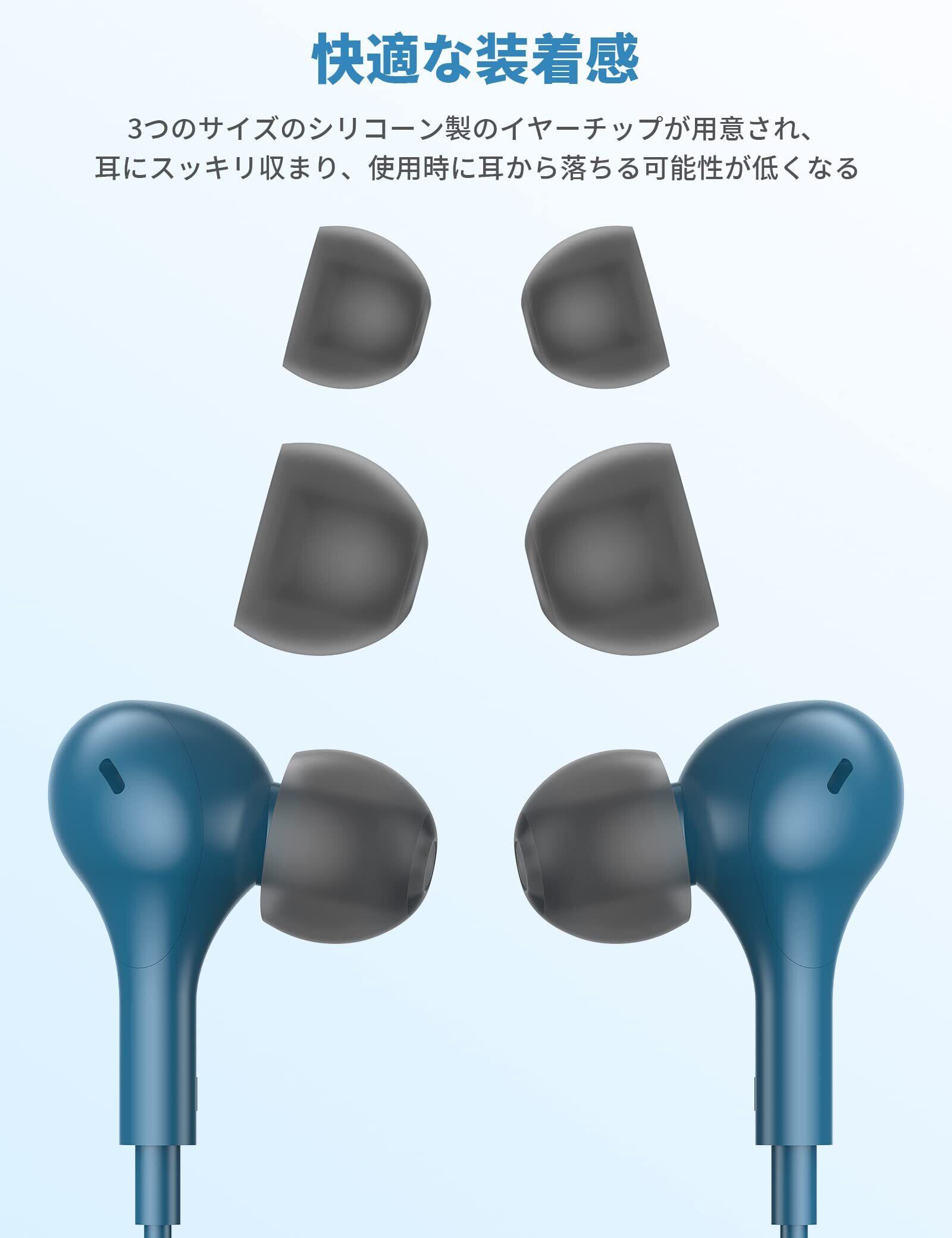 タイプc イヤホン 有線 マイク付き 磁気収納 カナル型 対応iPhone 16 15/Google Pixel 8a 7a Pro/Samsung S23 S24 Ultra z flip 5/iPad Pro mini6 10世代 USB Type C イヤフォン 対応Xiaomi/OPPO パソコンなどUSB-C機種 通話可能 リモコン付き 通勤/テレワーク/ZOOM会議 ブルー