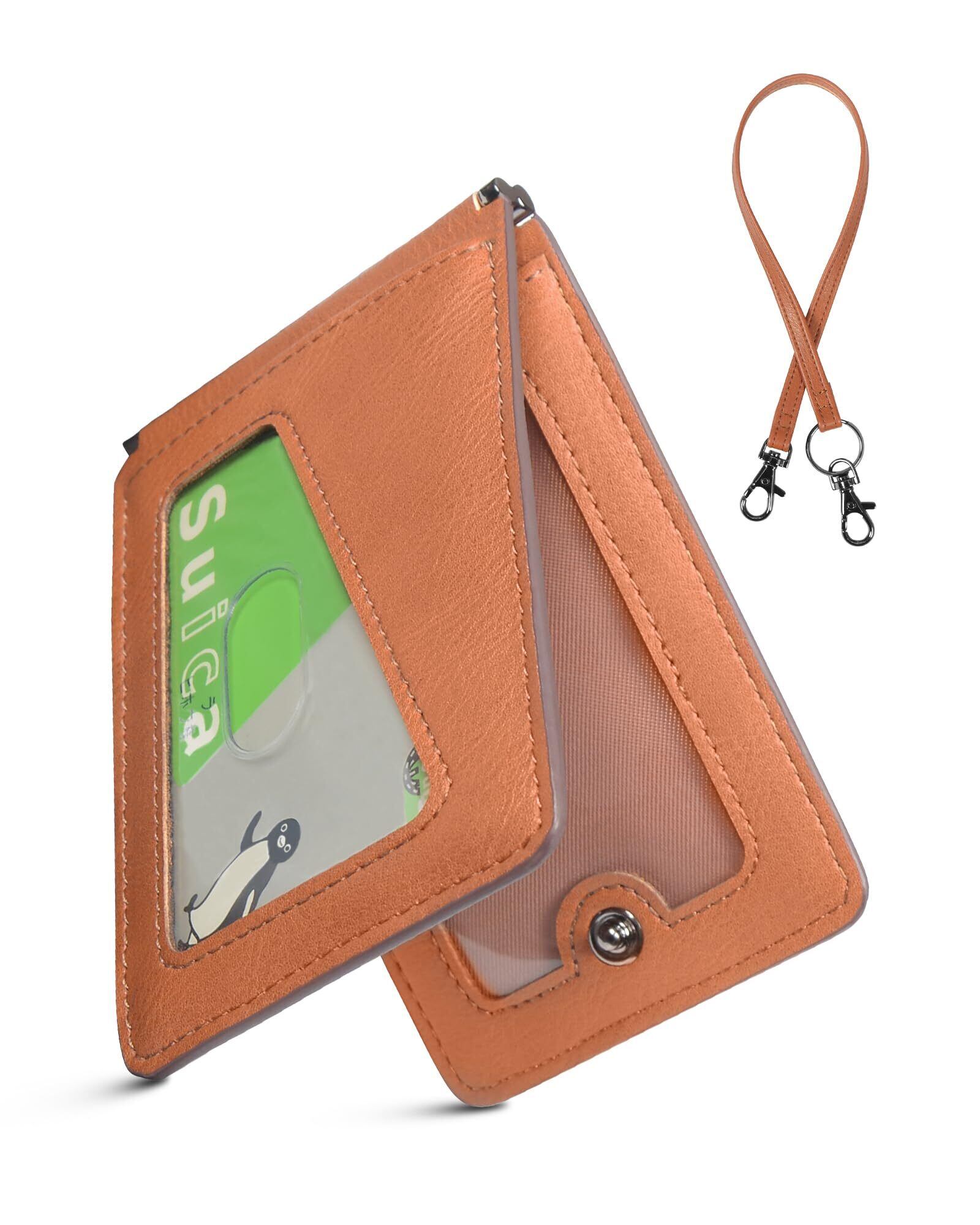 【特価セール】[LuoLuo] 定期入れ メンズ パスケース 5枚収納 本革Dカン 薄型 バタフライ ICカード2枚使用可能 ストラップ付き 通勤 通学 (ブラウン)