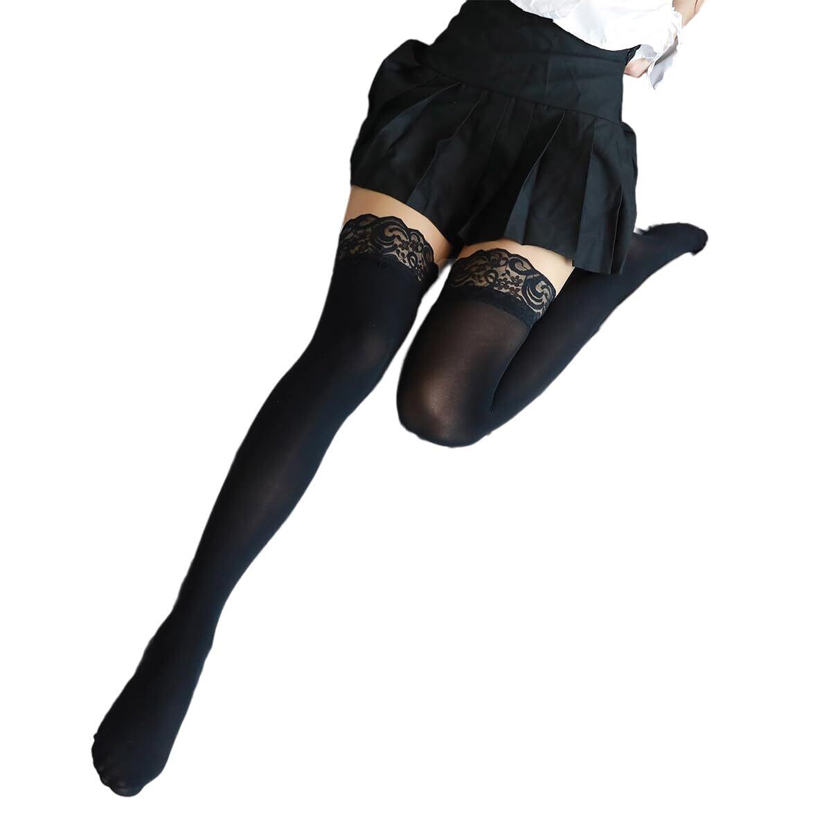 [POPULAR] ニーハイソックス ガーターストッキング 可愛いハイソックス cosplayや制服用 美脚 滑り止め付き 伸縮性あり レース付きストッキング 厚手のソックス 3色から選べます 四季を通じて使える