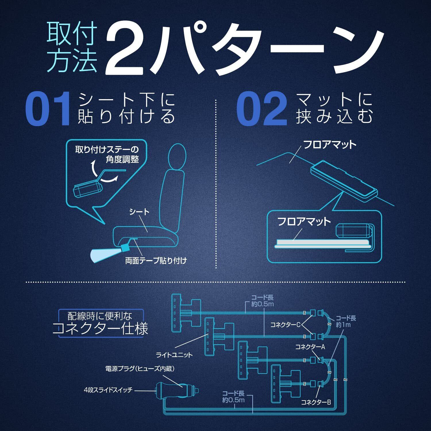 セイワ(SEIWA) 車内用品 LEDフロアライト 4連 ブルー/ホワイト切り替え イルミネーション F336 高輝度LED使用 シガープラグ DC12V電源