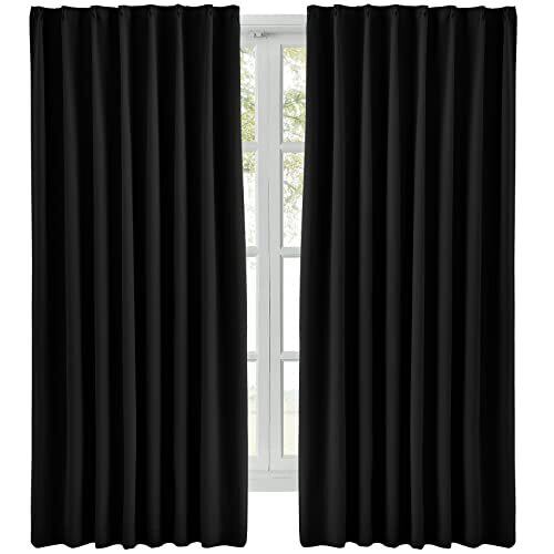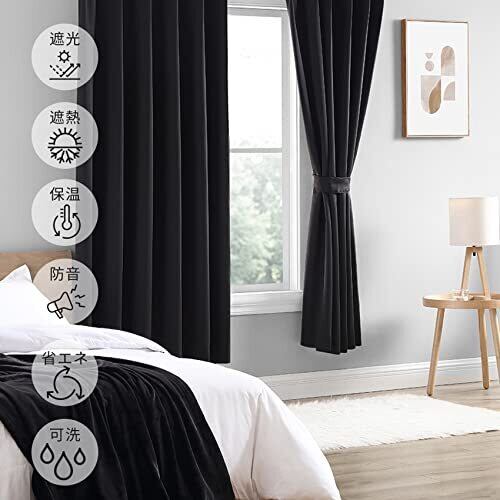 Hansleep カーテン 1級遮光 2枚組 断熱 防寒 防音 省エネ 厚手 無地 おしゃれ 洗える 寝室 リビング用 (ブラック, 幅100cm×丈135cm)