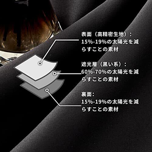◆【三重織り技術】生地は三重構造のテクノロジーの技術利用して黒い系を織り込んでいるから、優れた遮光機能が備えております。きちんと室外からの日差しや紫外線などをしっかり遮られる機能付きの厚地遮光カーテンです。