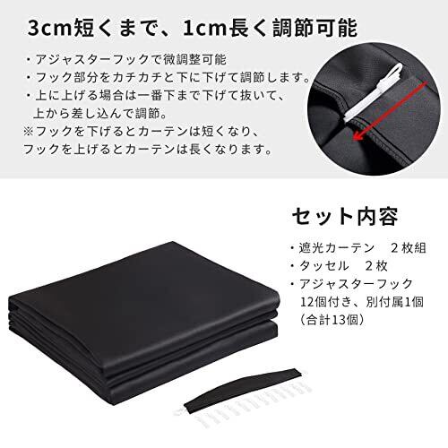 【数量限定】Hansleep カーテン 1級遮光 2枚組 断熱 防寒 防音 省エネ 厚手 無地 おしゃれ 洗える 寝室 リビング用 (ブラック, 幅100cm×丈135cm)