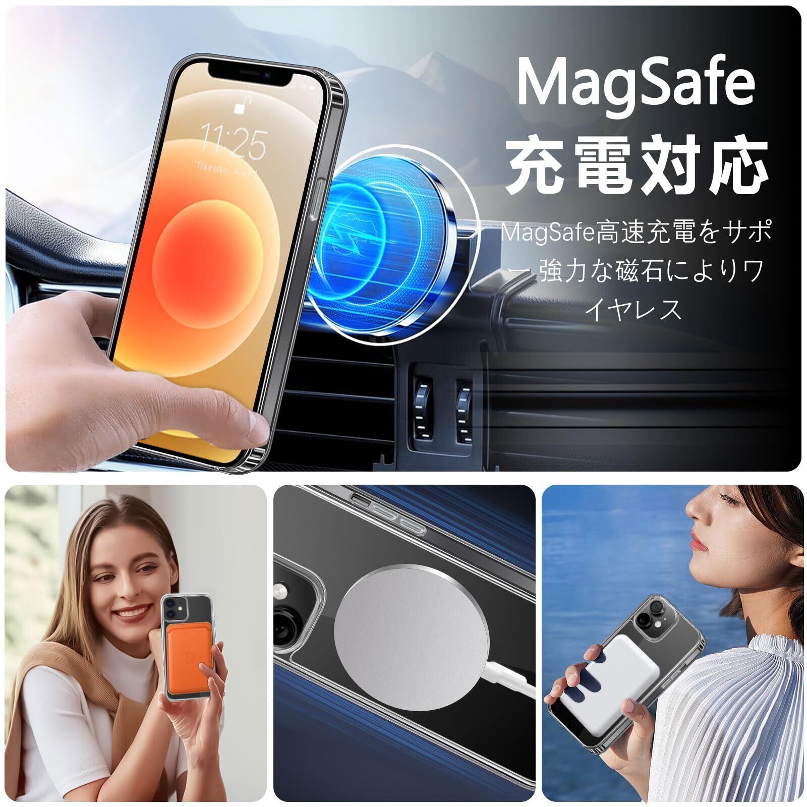 【新春セール】iPhone 12/12 Pro ケース MagSafe対応 超強磁力 クリア ワイヤレス充電 耐衝撃 アイフォン12/12 Pro スマホケース カバー 米軍MIL規格取得 ストラップホール付き(透明)