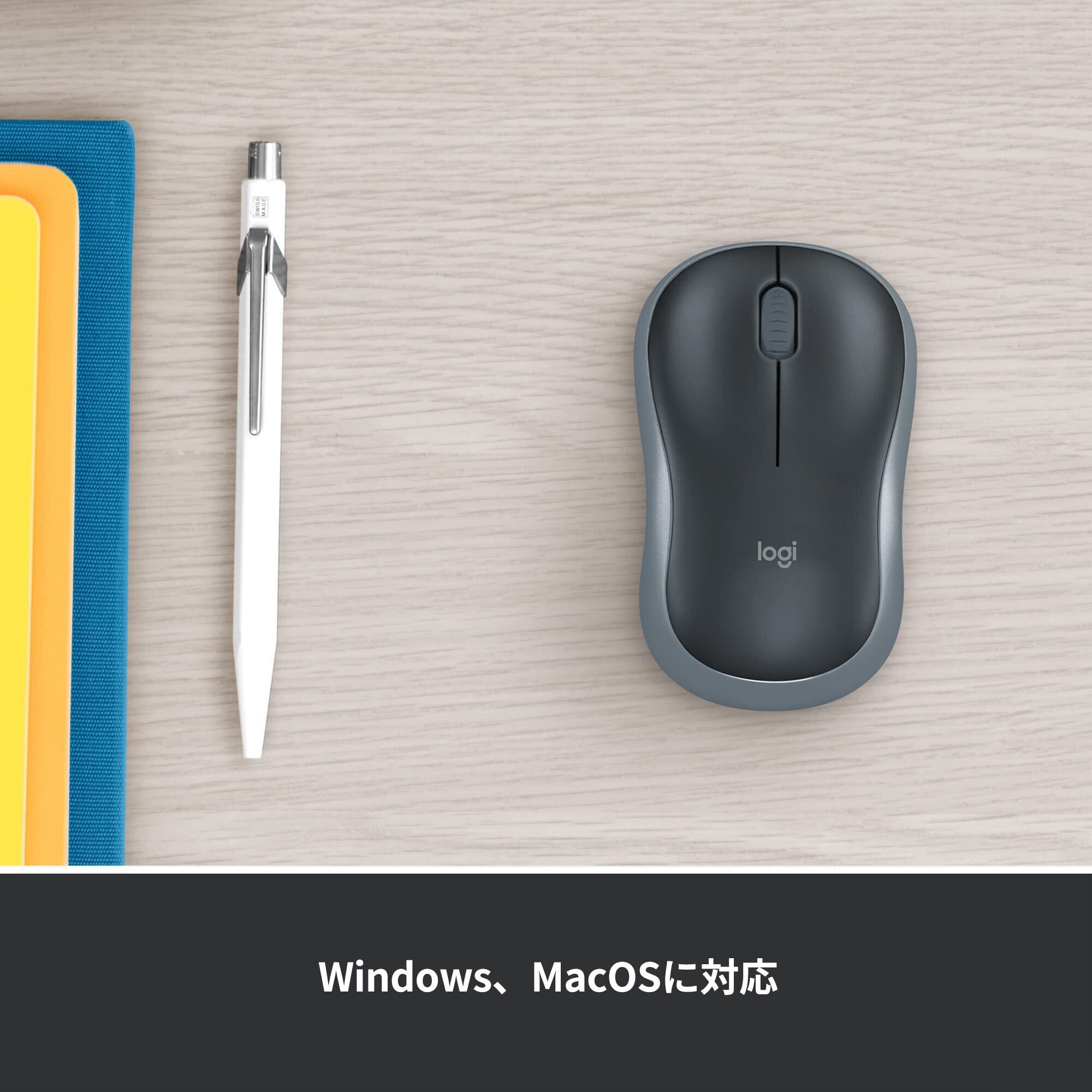 M185はロジクール定番のコンパクトなワイヤレスマウス。自然なフォルムで手にフィットしやすいこのマウスはWindows、Chrome OSおよびMacに対応。超小型のワイヤレスレシーバーを差し込むだけで簡単に使い始められます。最大12ケ月の電池寿命と3年間の長期も魅力のワイヤレスマウスです。 対応OS:Windows Vista、Windows XP、Windows RT、Windows 10以降、Windows 8、Windows 7、macOS 10.5以降、Chrome OS