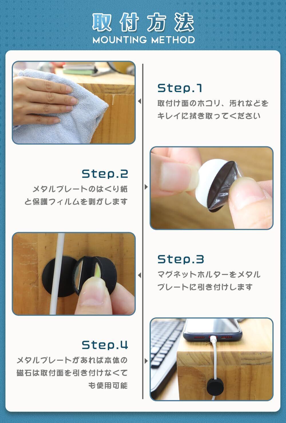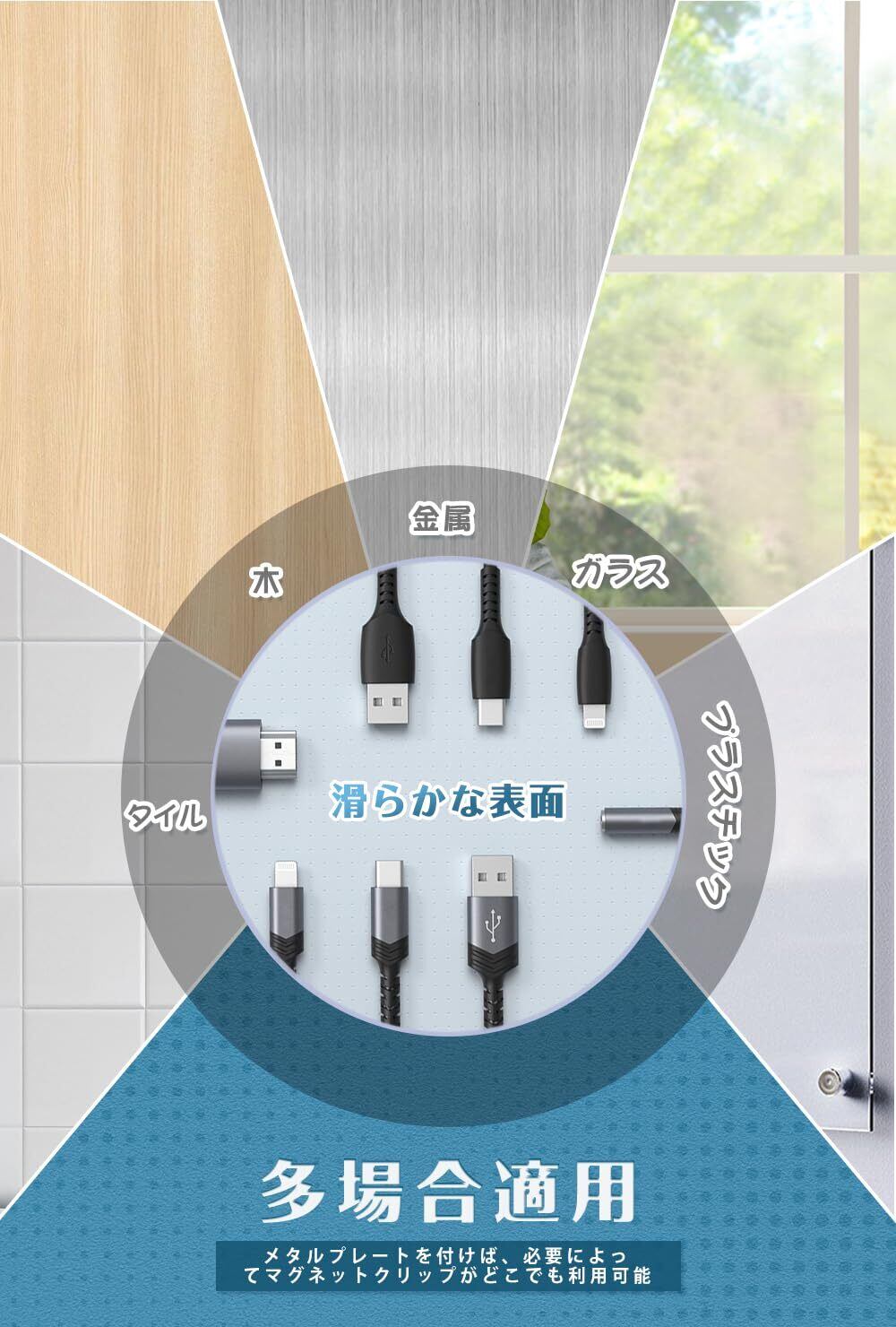 【どんな場所でも利用可能】強力な両面テープが付いたメタルプレートが同梱されています。ケーブルを収納したい場所が磁石を引き寄せなくても、メタルプレートを使用すれば簡単に問題を解決できます。メタルプレートの大きさは製品本体と同じで、目立たずに設置できます。道具は不要で、両面テープを簡単に貼り付けることができ、接着剤はアクリルゴム素材で、通常の接着剤よりも強力で、白い発泡ゴムの紙よりも目立たなくなっています。