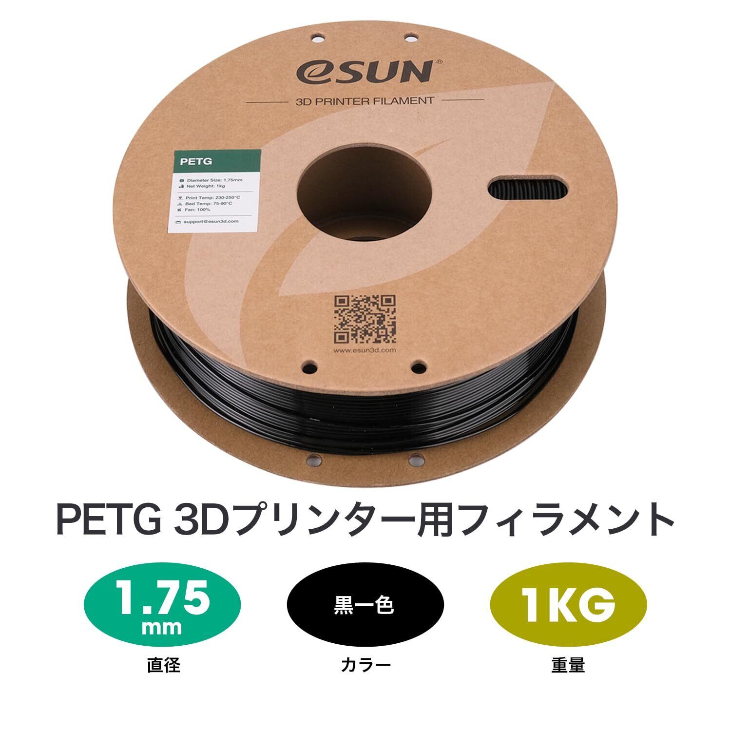 【数量限定】eSUN PETG 3Dプリンターフィラメント PETG 寸法精度+/-0.05mm、1.75mm径 3Dプリンター用 正味量1KG (2.2LBS) スプール造形材料PETG材料 (黒一色)