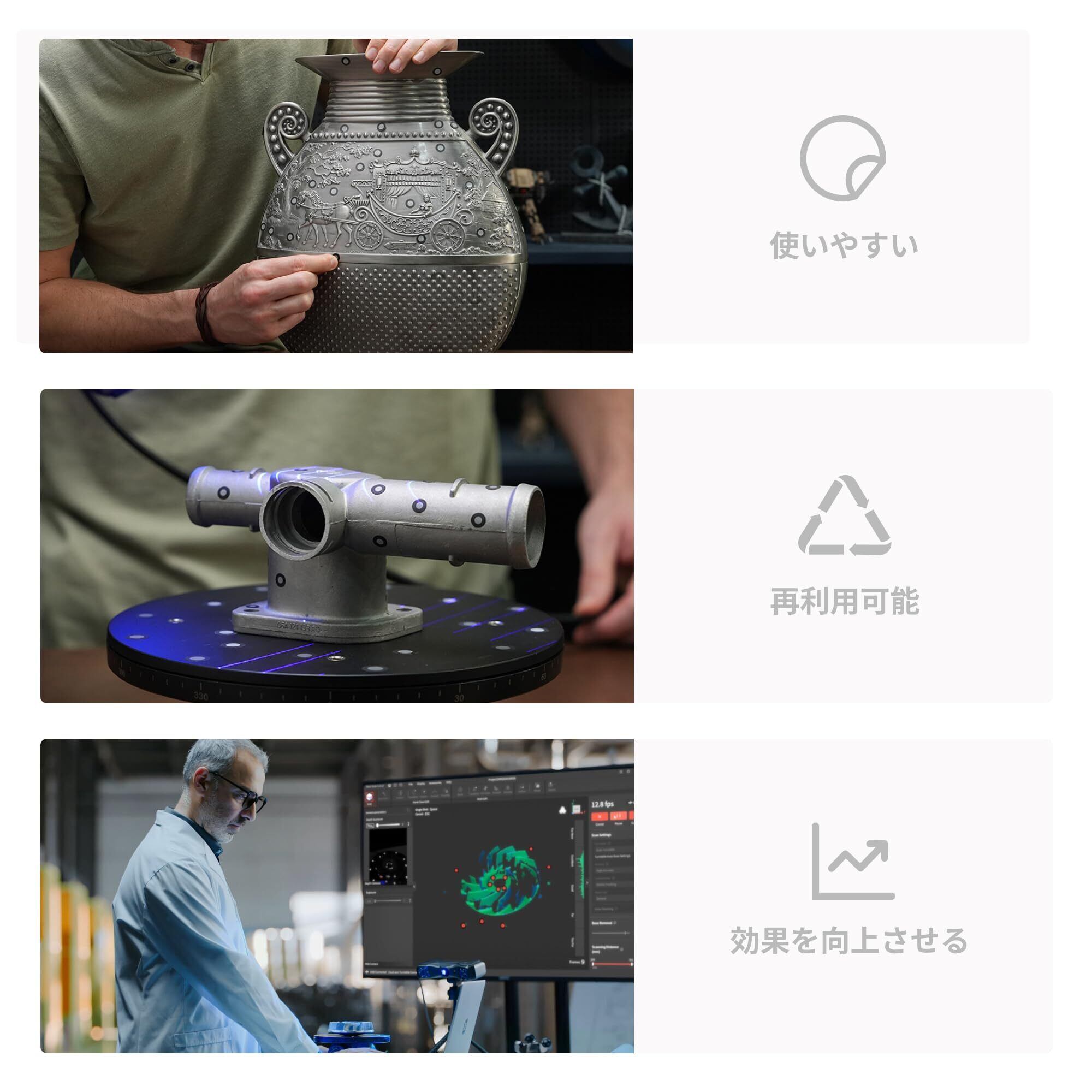 互換性: POP3/INSPIRE/MINI/RANGE/MIRACOシリーズを含む全てのRevopoint 3Dスキャナーに対応します。