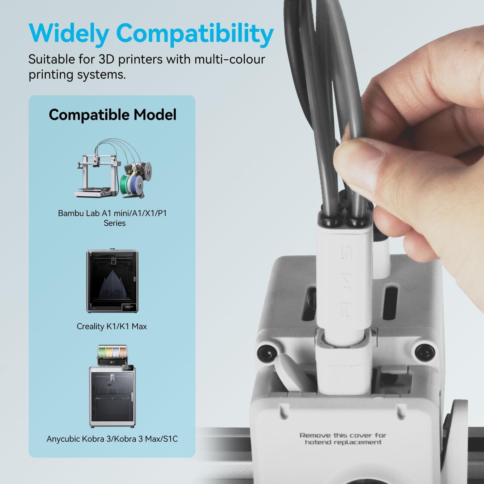 【互換性】この2メートルのPTFEテフロンチューブは、Bambu Lab A1、A1 Mini、P1P、P1S、X1Cなどのダイレクトドライブ押出機や、Creality K1、K1 Max、Ender-3 V3と互換性があります。 正確な寸法により、フィラメントの供給がスムーズになり、一貫した印刷結果が得られます。