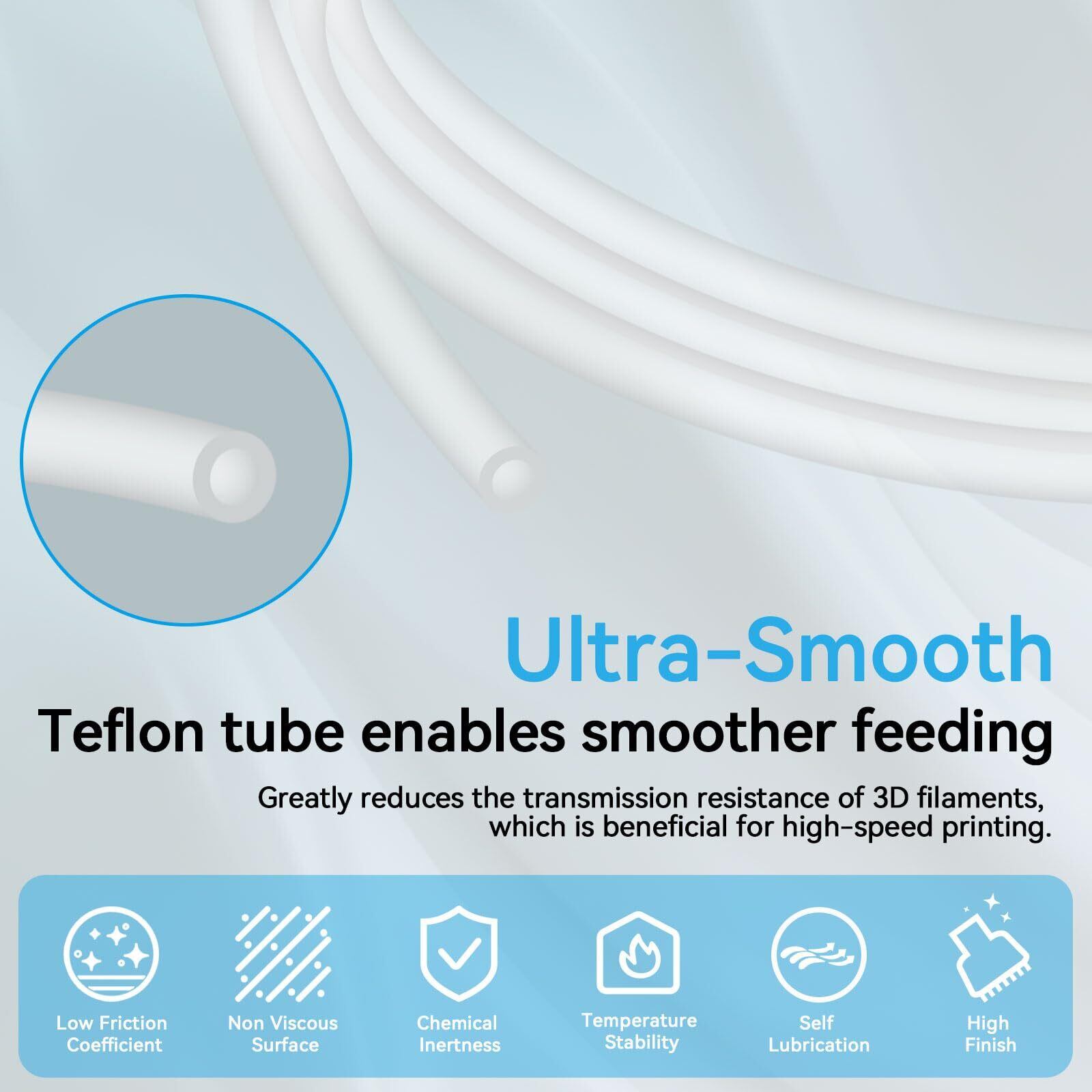 【高温耐性】PTFEチューブは温度範囲が広く、260℃まで耐えることができます。PLA、PLA+、ABS、PETG、TPU、その他多くの3Dプリントフィラメントに適しています。