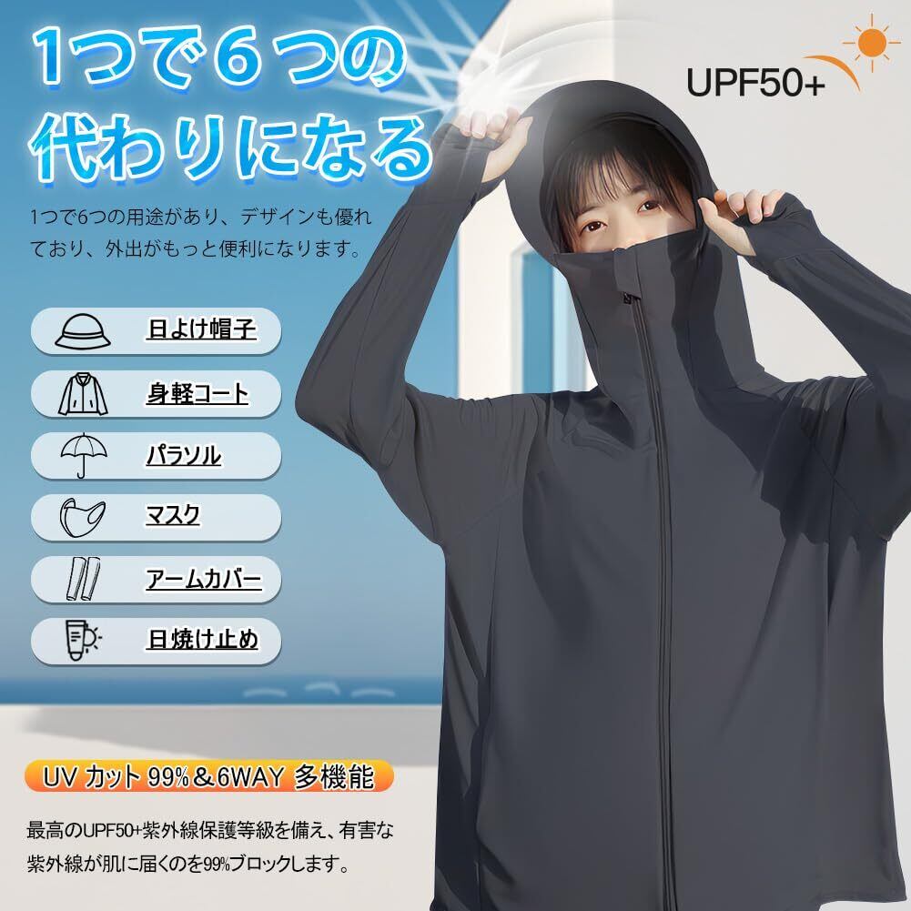 【UVカット99%&6WAY多機能】日焼け止め対策が不十分だと、シミやシワ、皮膚の老化、肌の黒ずみや日焼けによる赤みなどの肌トラブルが生じる可能性があります。このラッシュガードはUVカット性能の最高ランクUPF50+でお肌に有害な紫外線を99%カット!UPF50+の保護指数を誇り、マリンスポーツやアウトドアスポーツ中に紫外線ダメージから身を守ることができます。1つで6つの代わりになるので、日よけ帽子・身軽コート・パラソル・マスク・アームカバー・日焼け止めクリームとして使えるようにいいデザインです、外出がより便利になります。