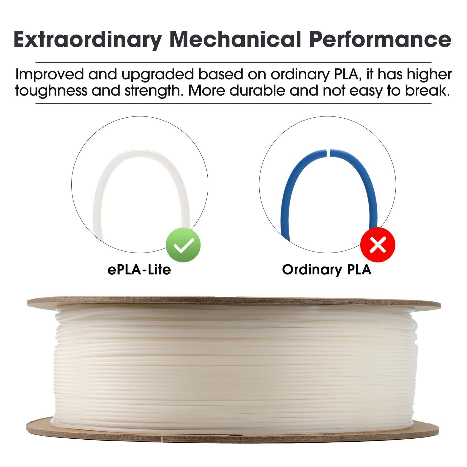 【eSUN PLA 3Dプリンターフィラメント】eSUN PLA Liteは、コストパフォーマンスの高いフィラメントとして、PLAのすべての利点を保持しています。印刷が簡単で、優れたレイヤー接着性、低収縮、割れなし、高い靭性、そして壊れにくいという特性があり、初心者の3Dプリント愛好者やプロフェッショナルの両方にとって理想的な選択肢です。
