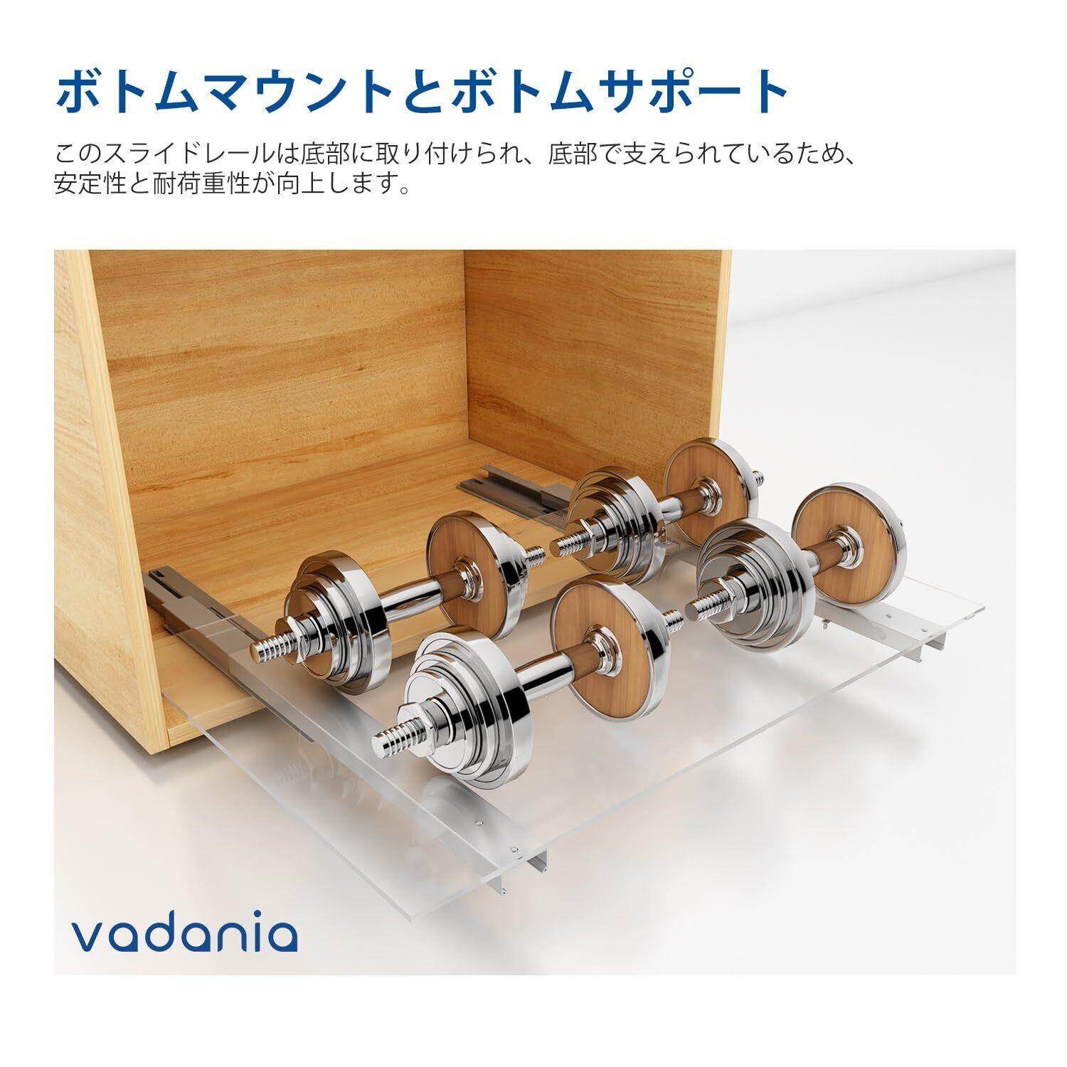 【新着商品】VADANIA 250mm 底引き引き出しスライド ソフトクローズ ボトムマウント&ボトムサポート 耐荷重40KG 底付けタイプ スライドレール 底引 左右1ペア