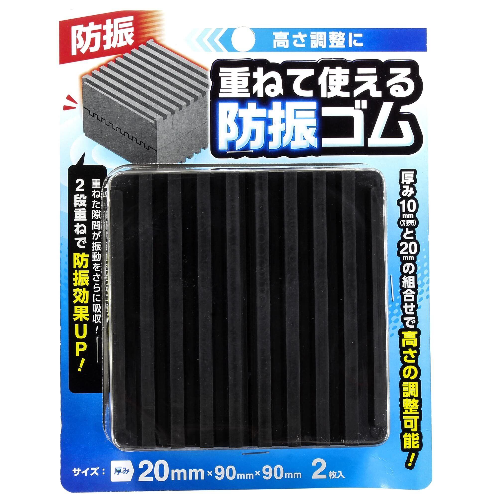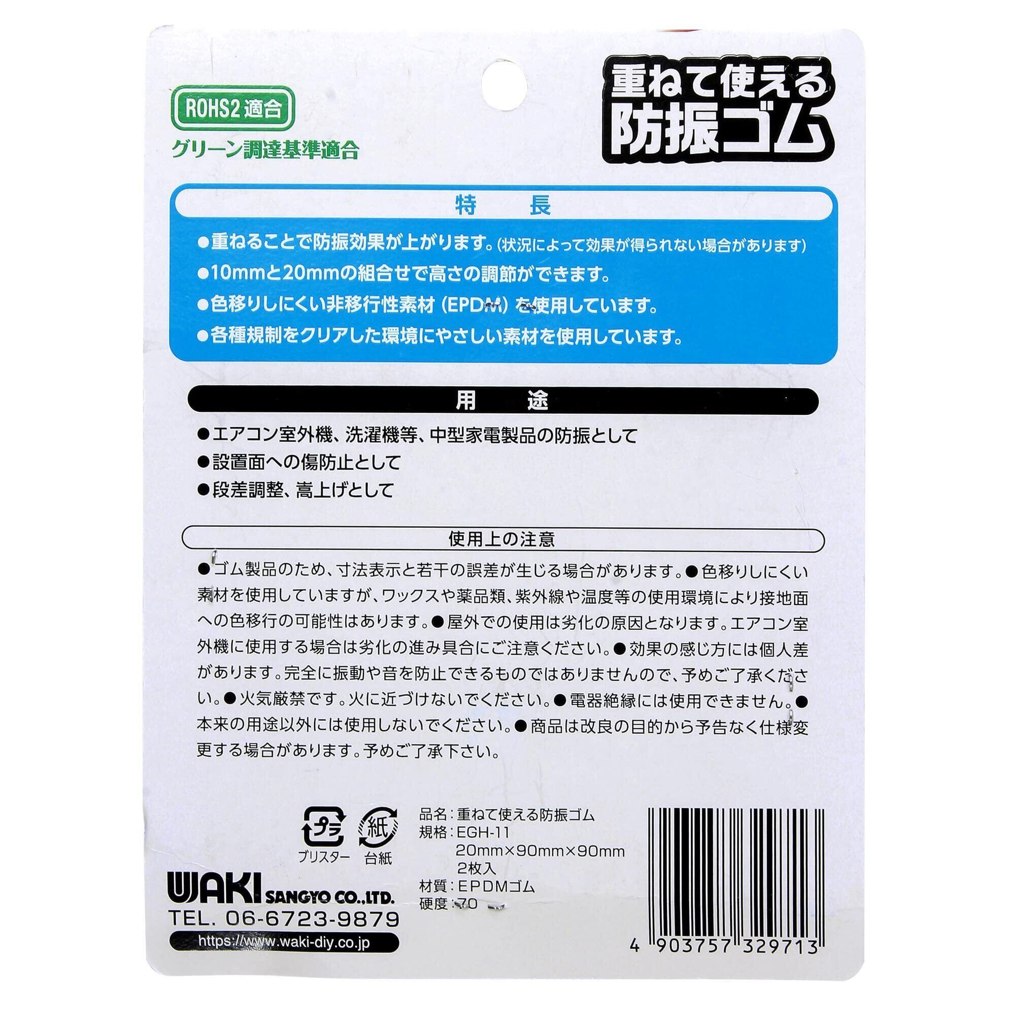 和気産業 重ねて使える防振ゴム ブラック 厚さ20X幅90X高さ90mm 室外機 洗濯機 嵩上げ 高さ調整 傷防止 EGH-11 2枚入
